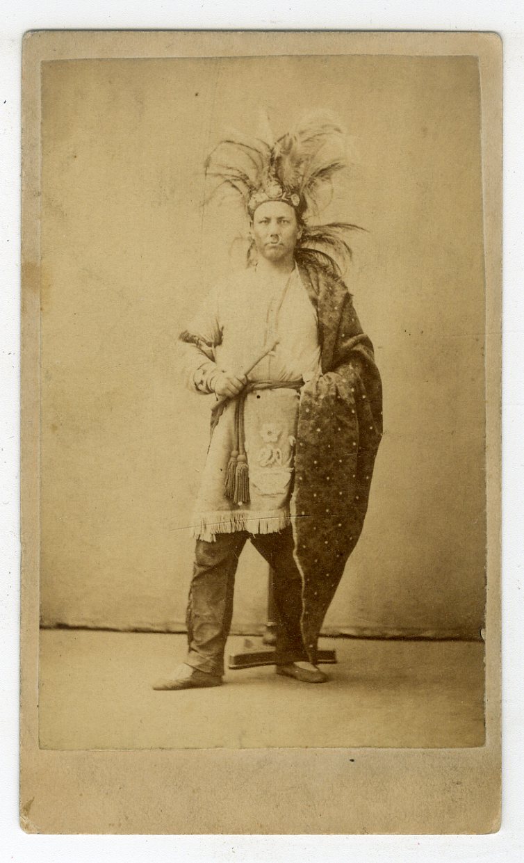 NACDV99. Whitney’s Gallery, St. Paul, Minn. Po-Go-Nay-Ke-Shick (Hole in the Day). The Celebrated Chippewa Chief. 2-cent tax stamp on verso. Trimmed at top o/w VG. $200