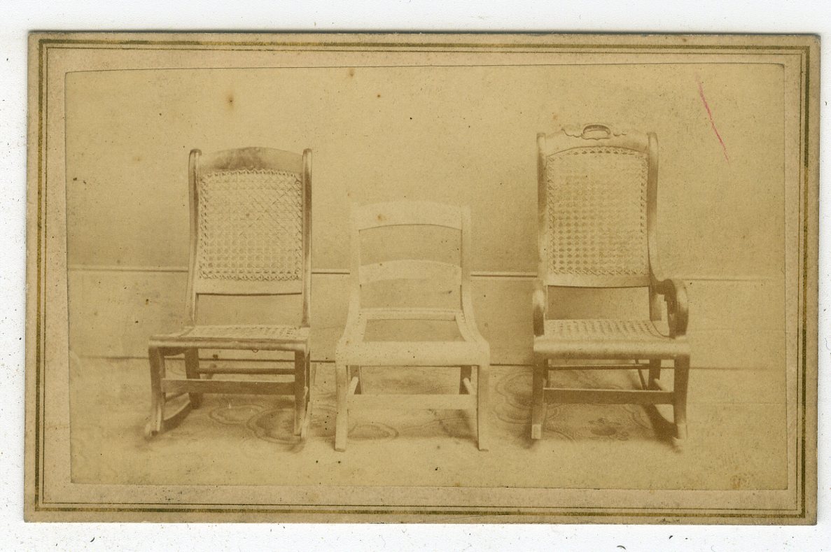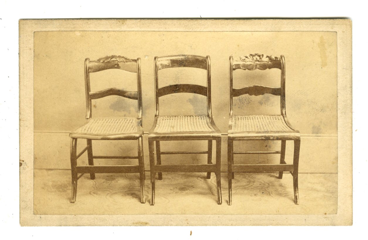 OCDV158. I.H. Bonsall, Cincinnati, O. Advertising sample CDV showing three types of chairs. This was a salesman’s sample photograph to show to prospective customers no doubt while out in the field seeking sales. G. $35