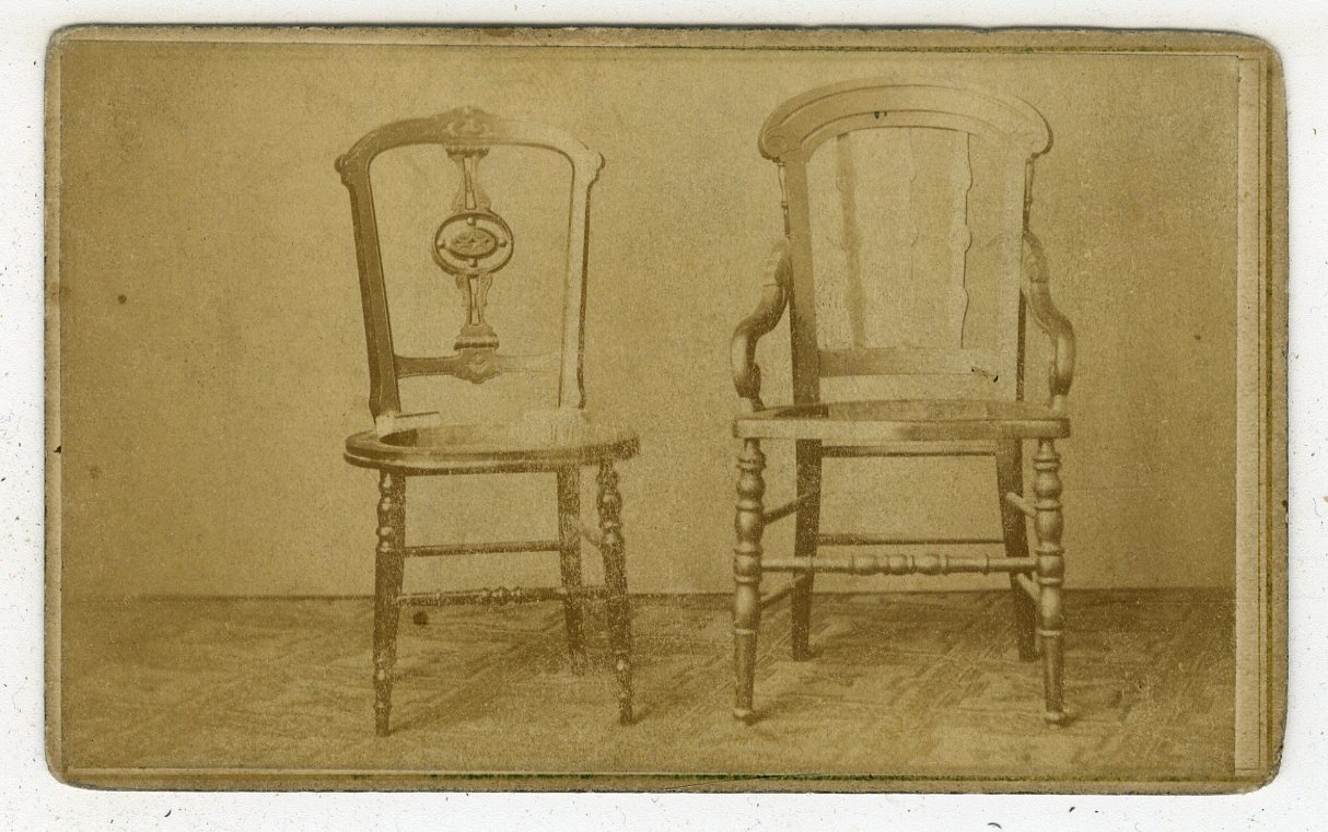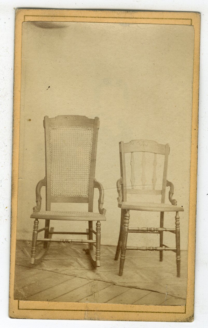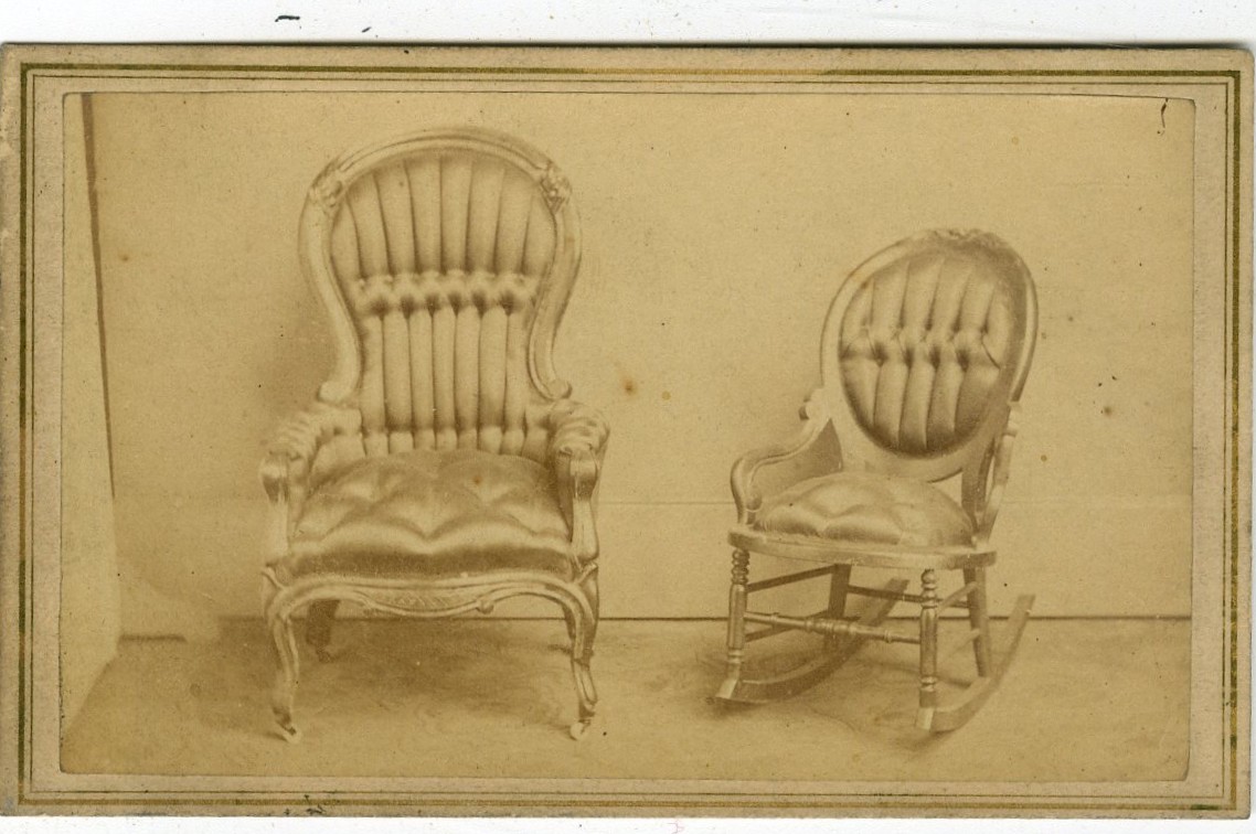 OCDV157. Advertising sample CDV showing two types of chairs. This was a salesman’s sample photograph to show to prospective customers no doubt while out in the field seeking sales. G. $35