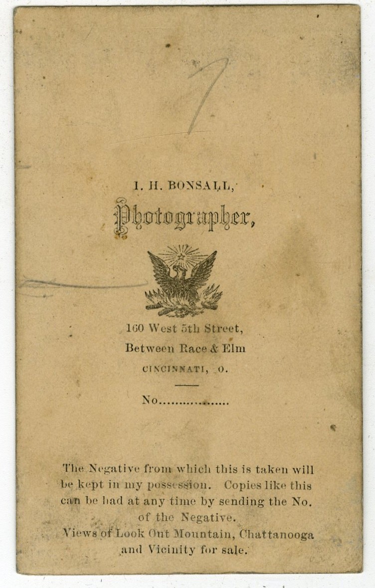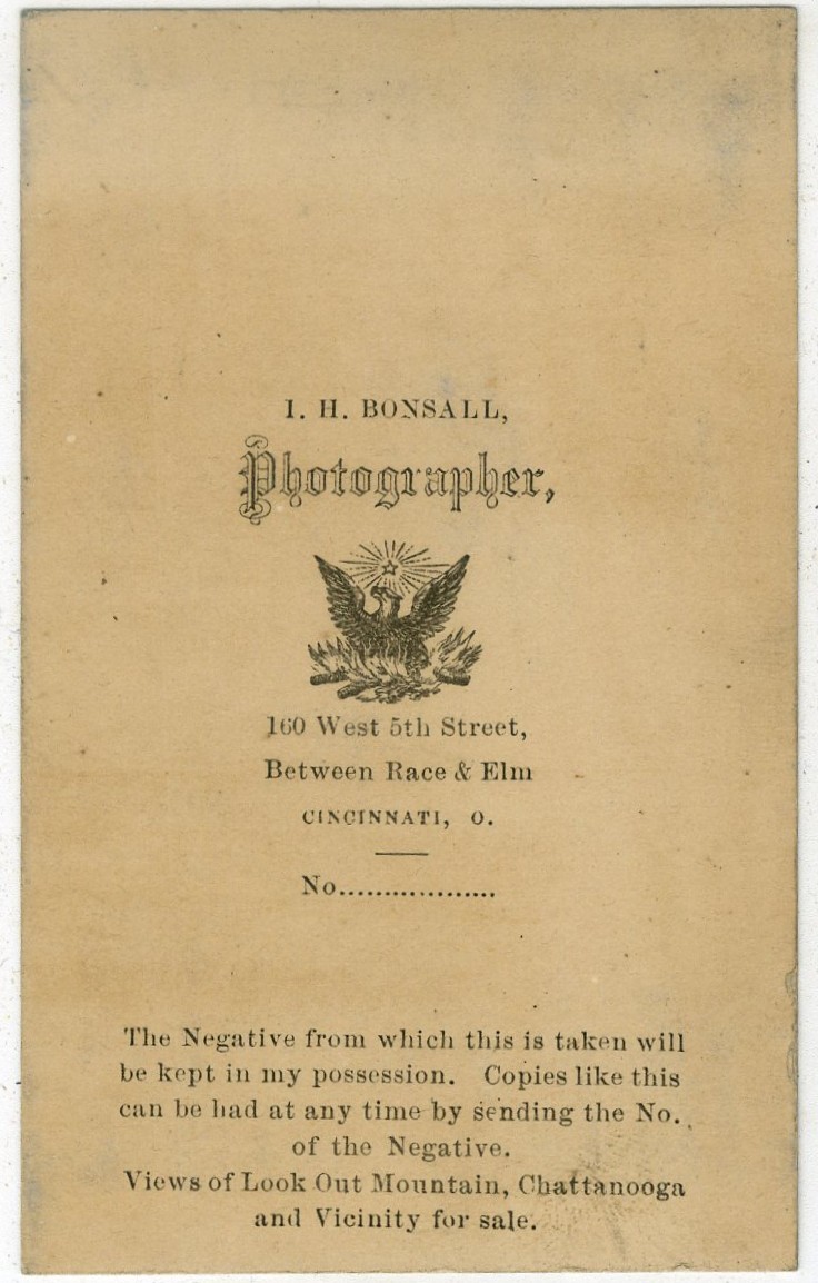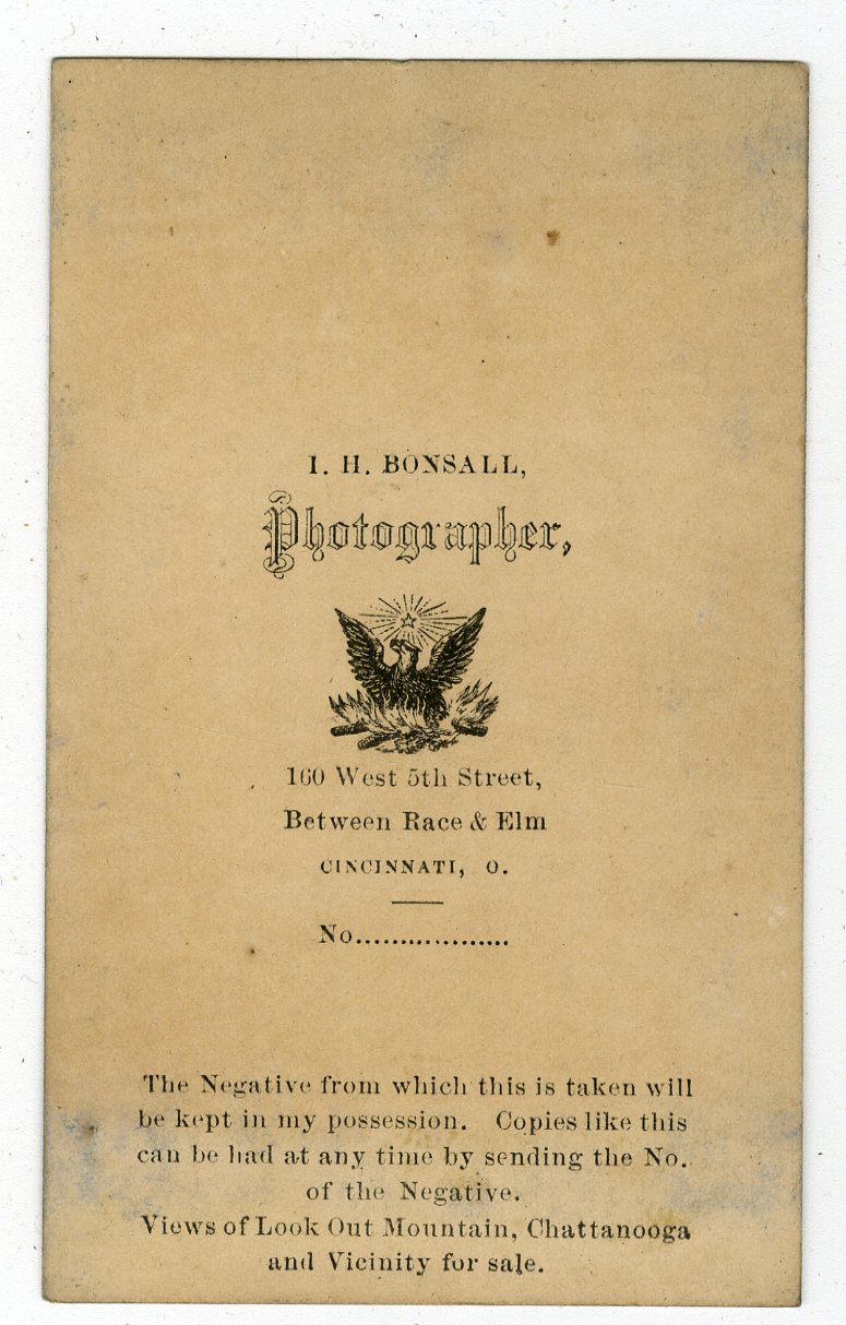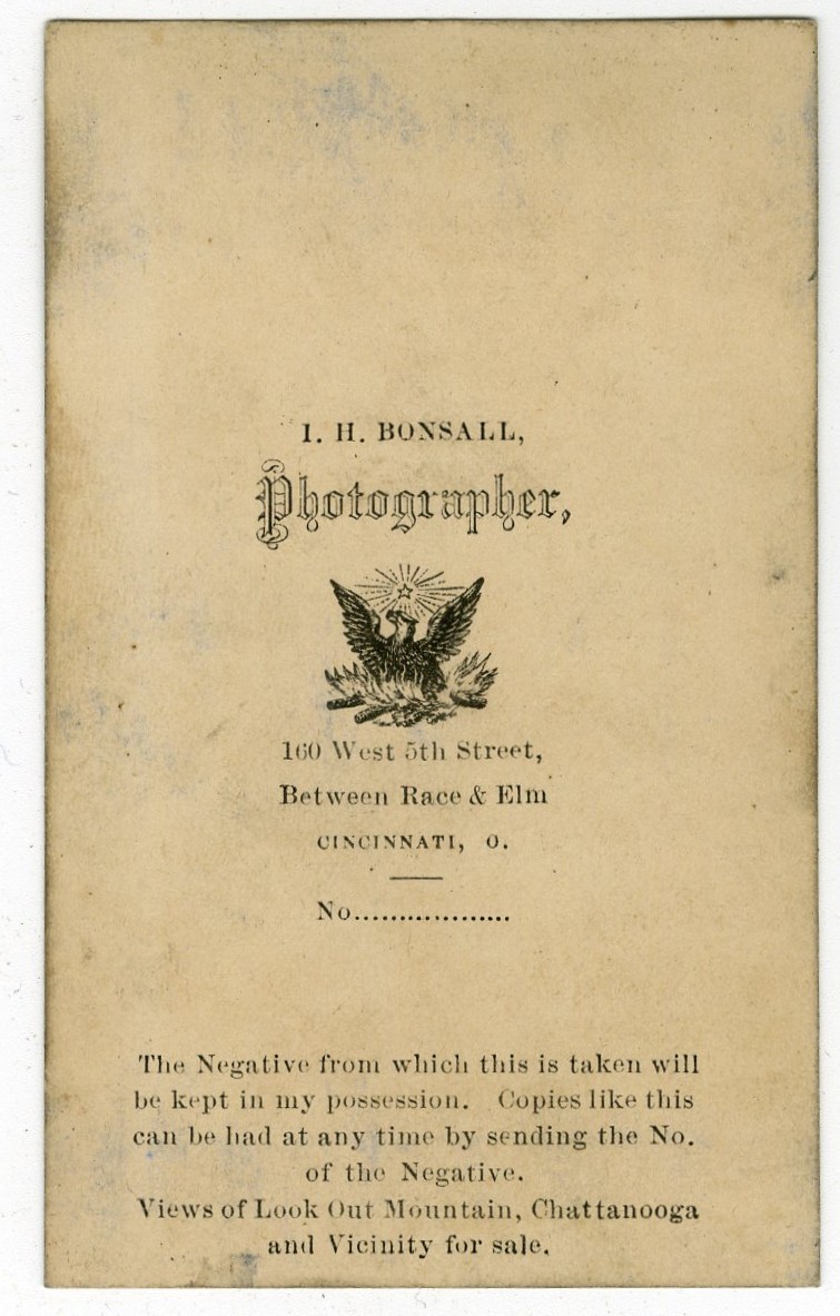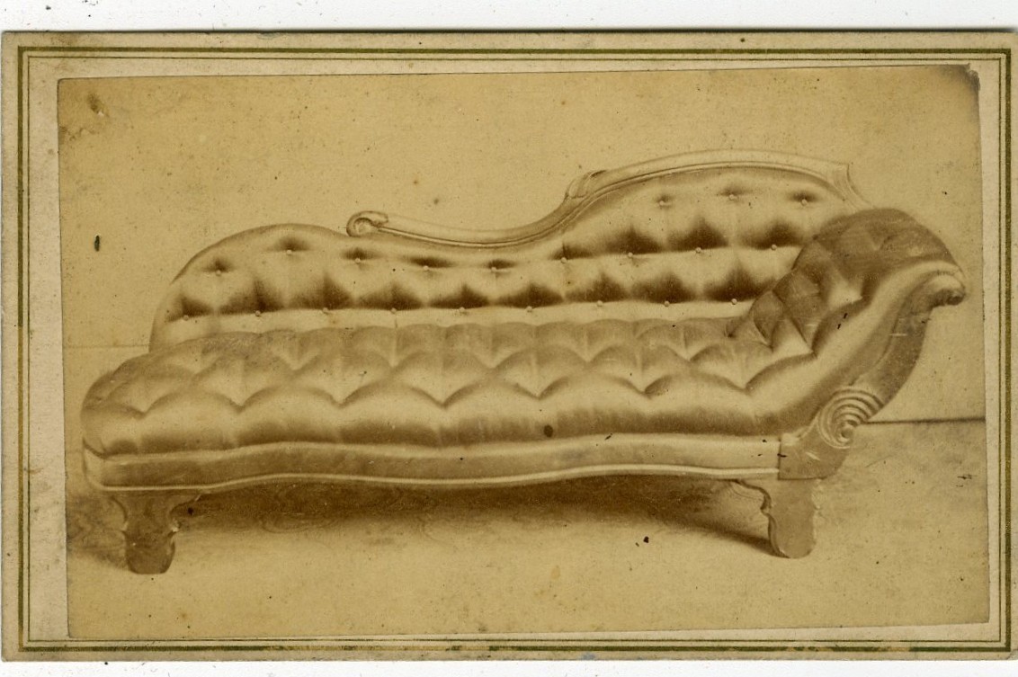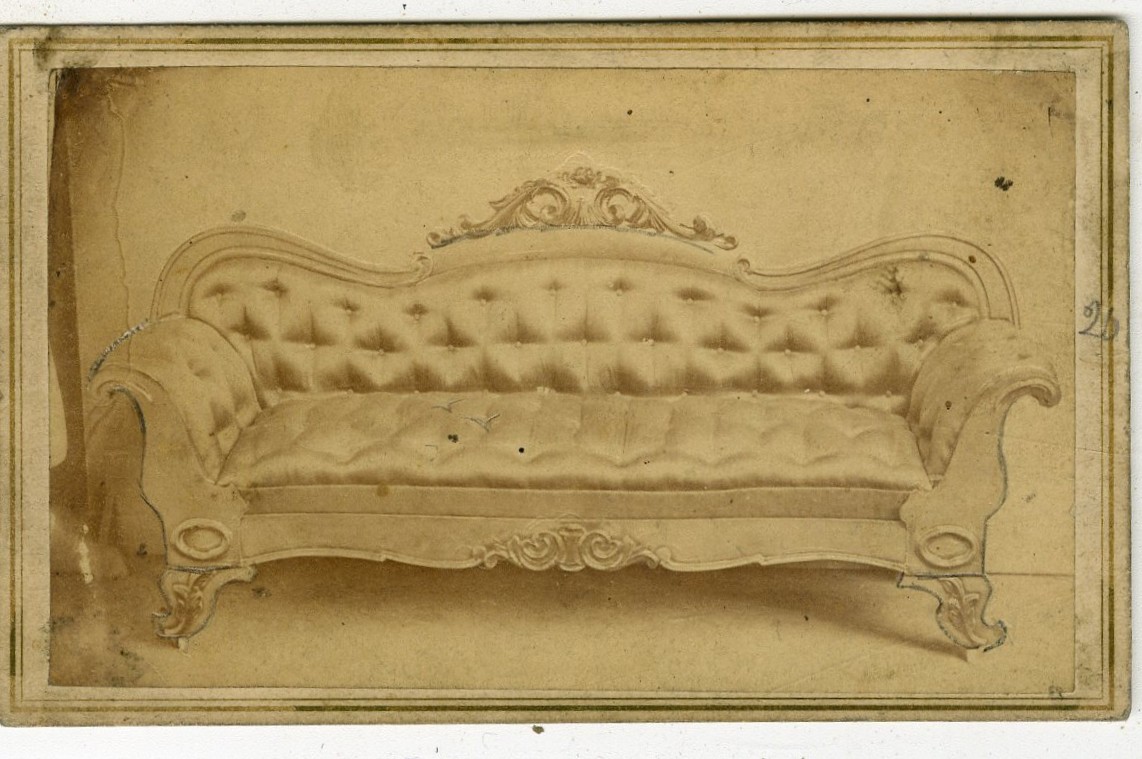 OCDV159. I.H. Bonsall, Cincinnati, O. Advertising sample CDV showing a sofa. This was a salesman’s sample photograph to show to prospective customers no doubt while out in the field seeking sales. G. $35