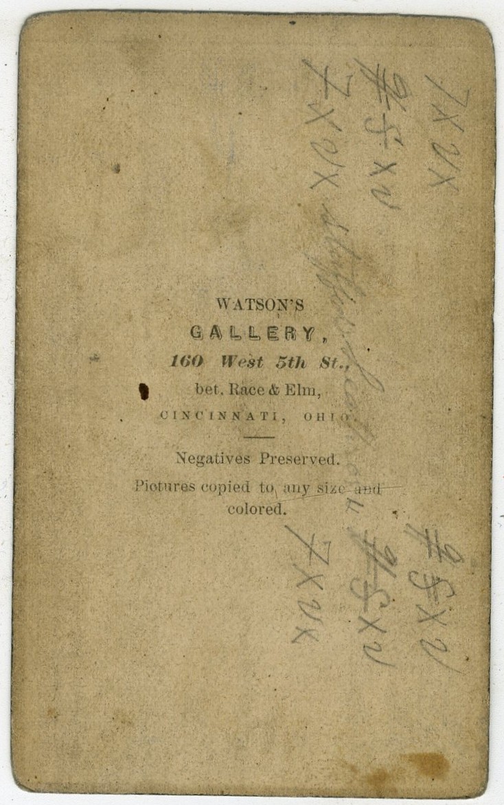 OCDV162. Watson’s Gallery, Cincinnati, Ohio. Advertising sample CDV showing two types of chairs. This was a salesman’s sample photograph to show to prospective customers no doubt while out in the field seeking sales. G. $35