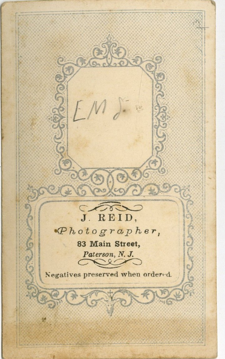 OUT423. J. Reid, Paterson, NJ, blindstamp bottom right recto. Unidentified location in NJ. G. $35