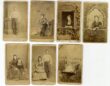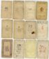 PPCDV292. CHECKERS! Collection of 13 CDVs, all identified. These images are identified on CDV page mounts. I removed them from the mounts to scan them and I wrote the names of the people on versos. The CDV mount pages will be included in the lot. The highlight of the lot is an image identified as J.C. Lanford & Amelia and they are playing chess. There is another CDV of Lanford with “Nantucket May 1866” on verso. You should be able to read the names of the other sitters from the scans. Photographers include: Allen, Boston (2); Bierstadt Bros., New Bedford (3); Geo. F. Parlow, New Bedford (2); Marshall, Boston (2); E.S. Dunshee, New Bedford (1); Silsbee, Case & Co., Boston (1); Horton, Boston (1); and one profile gem tintype without a backmark. One cdv has a tax stamp. Five of the CDVs and the gem tintype have been trimmed. A most interesting grouping worthy of further research to uncover what connects these folks. G-VG. $100