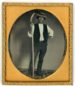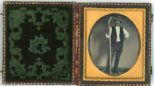 D300. Sixth-plate daguerreotype of a boy standing on a table. Image has been resealed and is housed in a half-leather case. VG. $125