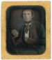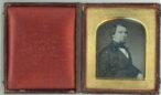 D1200. Sixth-plate daguerreotype of a gentleman. Image has its original seals and is housed in a full, split leather case. G. $65
