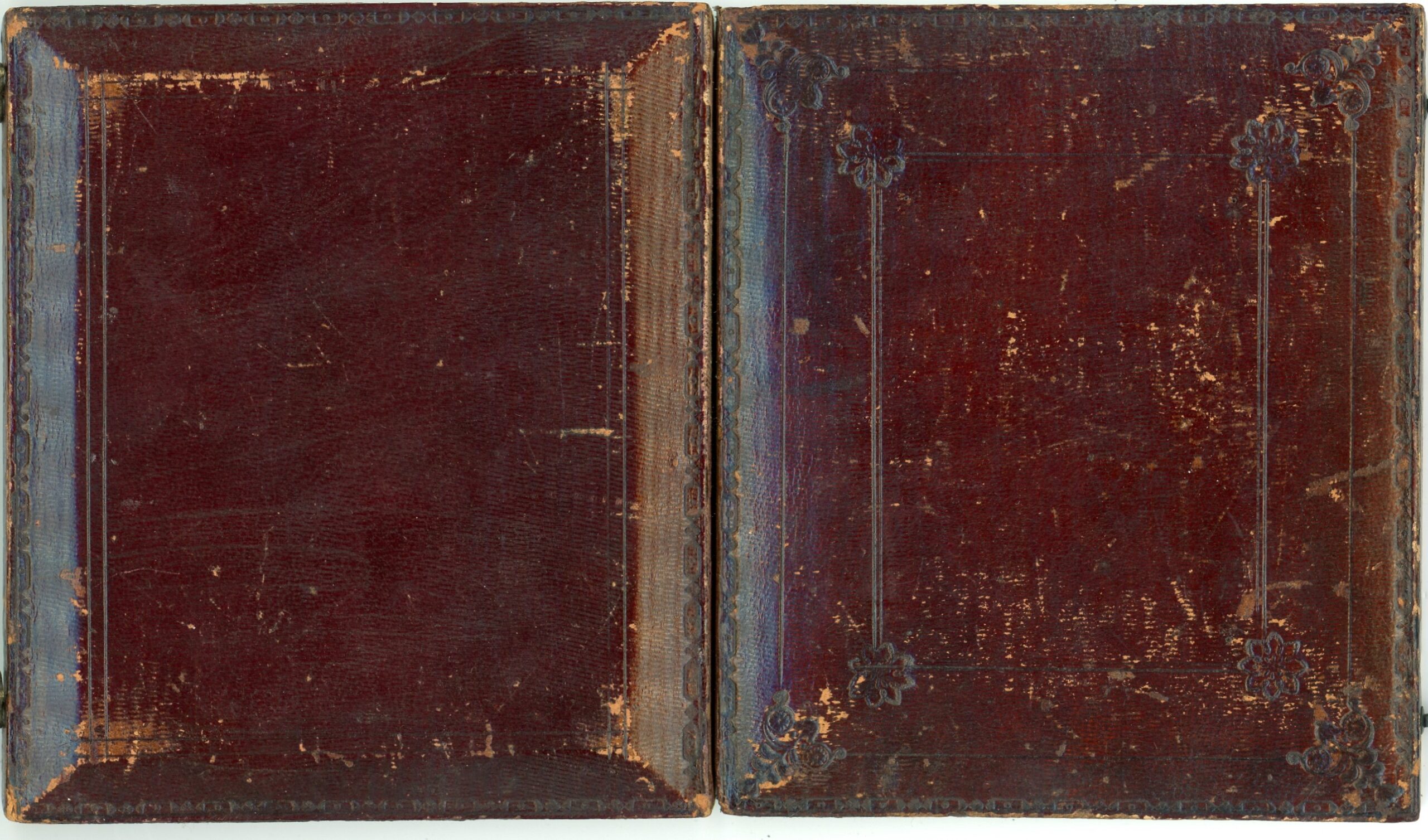 D928. Double sixth-plate Union case (Berg 1-14, Mother Embracing Child 2) with two daguerreotypes by Anson, NY. One is tinted. Both images were resealed by Ken Appollo in the early 1990’s. there is one chip on the rim of the case, a few nicks, strong hinges, clicks shut. G. $250