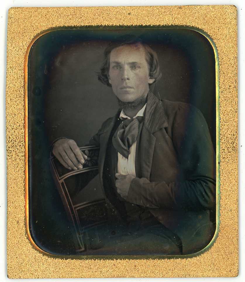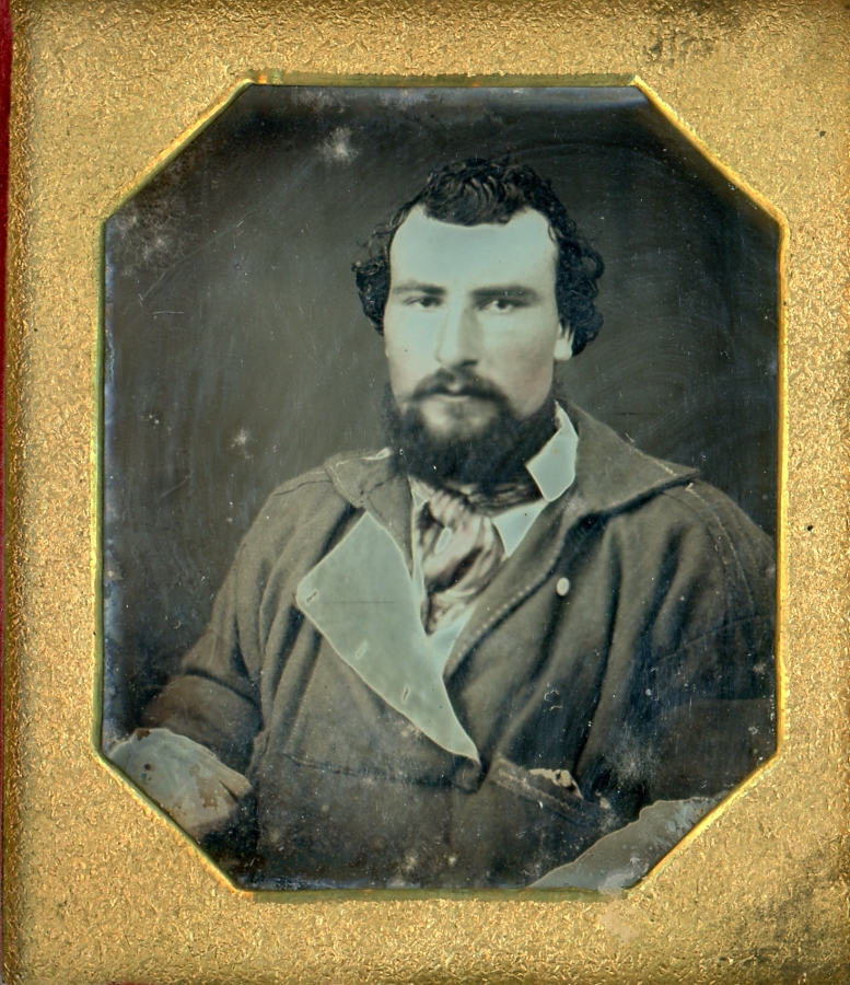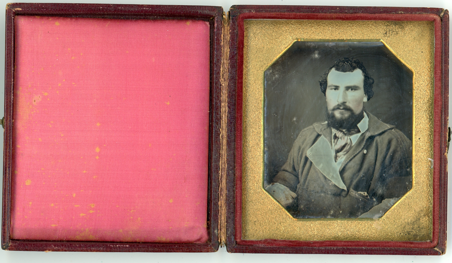 D1294. Sixteenth-plate daguerreotype of a gentleman with beard. Resealed, housed in a full leather case. G. $45