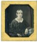 D947. Sixth-plate daguerreotype identified by original slip on velvet mat as “Levi S. Backus-Husband of Anna Ormsby Backus. Both deaf mutes.” Image had its original seals which were broken so as to clean the glass. Image was then resealed. Housed in a full leather case by Wm. Shew, Boston. This daguerreotype is now in the Portrait Gallery, Smithsonian Institution.