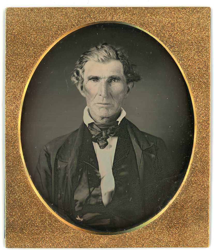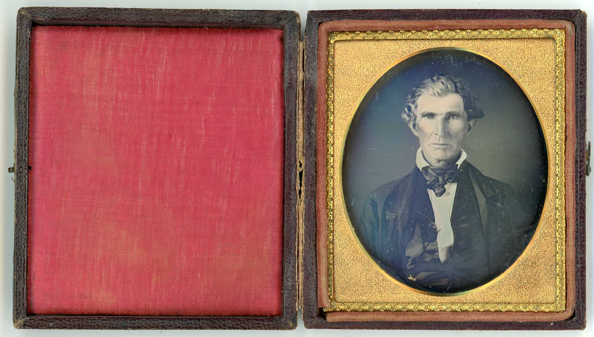 D1215. Sixth-plate daguerreotype of Daniel W. Baldwin, Grandfather Baldwin. Original seals, housed in a full leather case. VG. $125