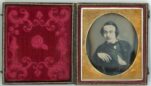 Case127. Sixth-plate thermoplastic case (Berg 1-104, Calmady Children). Daguerreotype of handsome gentleman within. Image is resealed. VG. $275