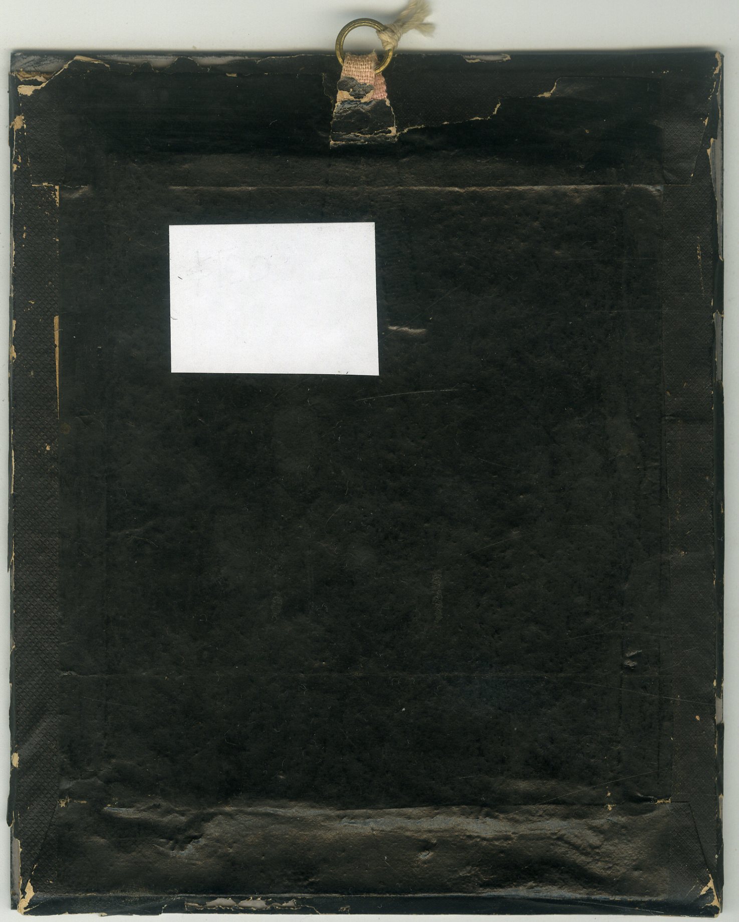 D1323. Oval daguerreotype (2″ x 1.5″) mounted on a box lid (box missing). The wooden lid measures 4.375″ x 3.125.” G. $125