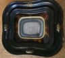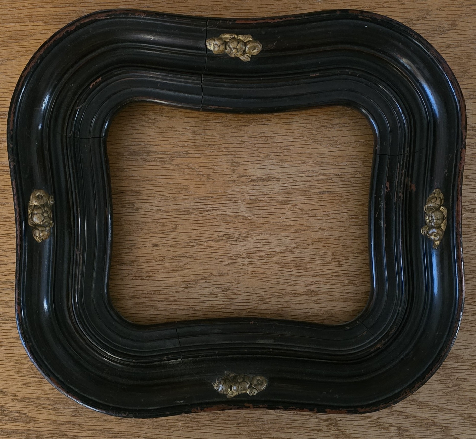 D355. Thiery, Artiste Photographe, Paris. Visible daguerreotype measures 5.5″ x 4.25″ framed in a passe-partout mat in a black thermoplastic frame measuring 14.5″ x 12 3/8.” There are few hairline cracks along the frame which remains very solid. Thiery’s label on verso. On tape on back is written: “Resealed March 1994, C. Wahren, New Haven, CT. Frame original to image.” This is a wedding daguerreotype with the groom at center, his bride at right and his mother-in-law at left. VG. $1800