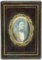 D855. Sixth-plate daguerreotype of a painting of a woman. Original seals were replaced, housed in a full leather case. VG. $225