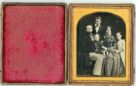 D428. Sixth-plate daguerreotype of a daguerreotype of multiple daguerreotypes. Old reseal, housed in a half-leather case. VG. $900