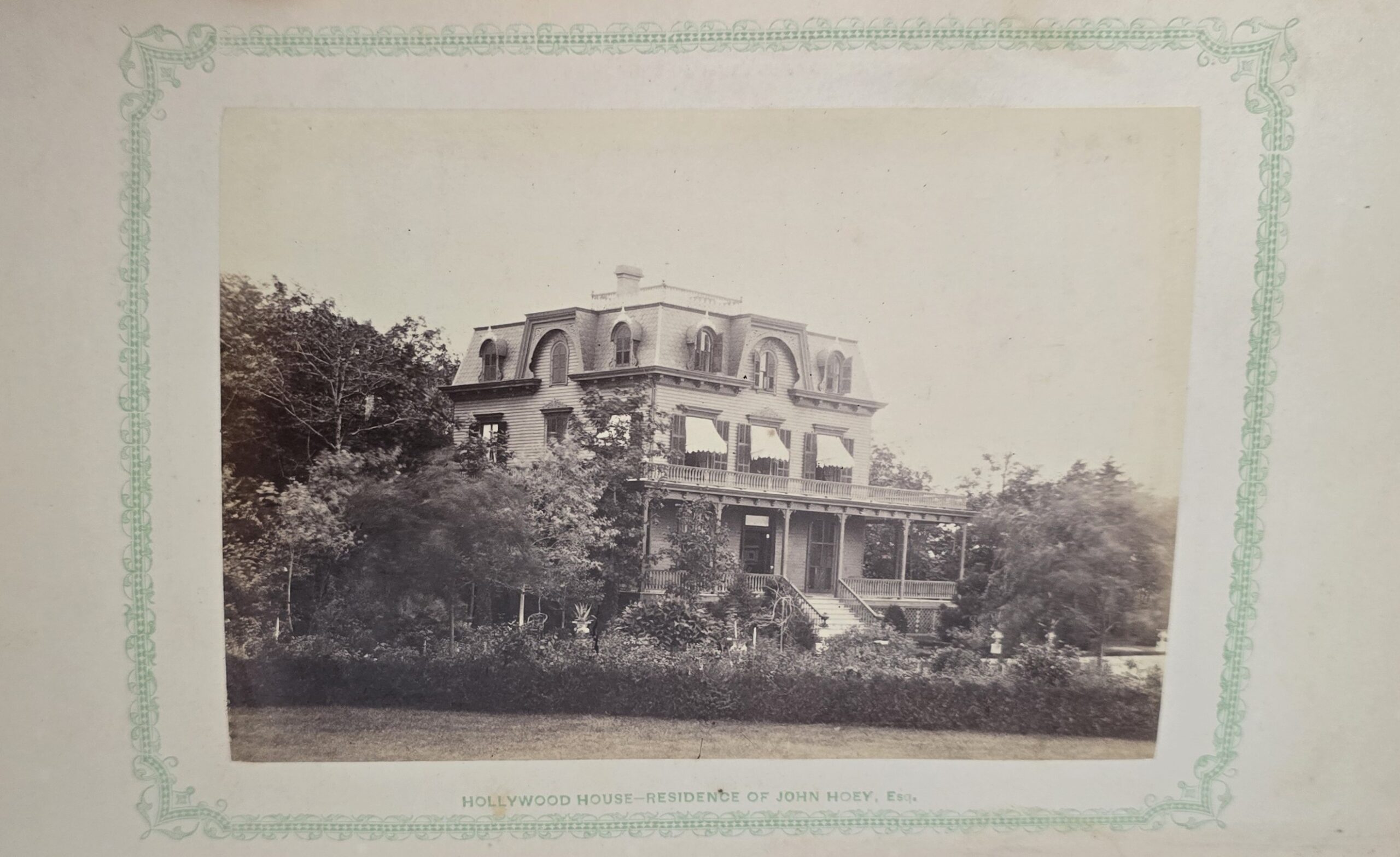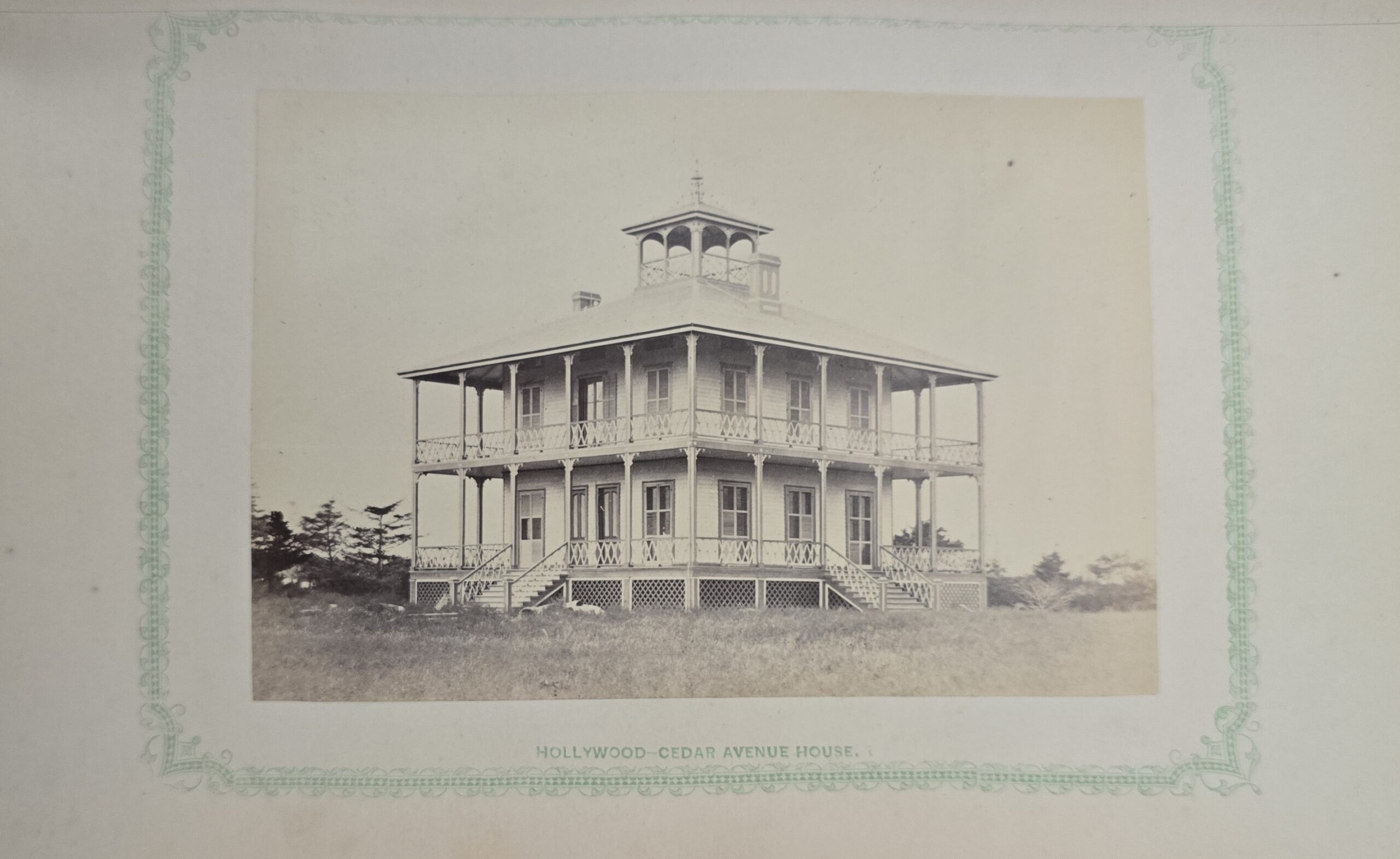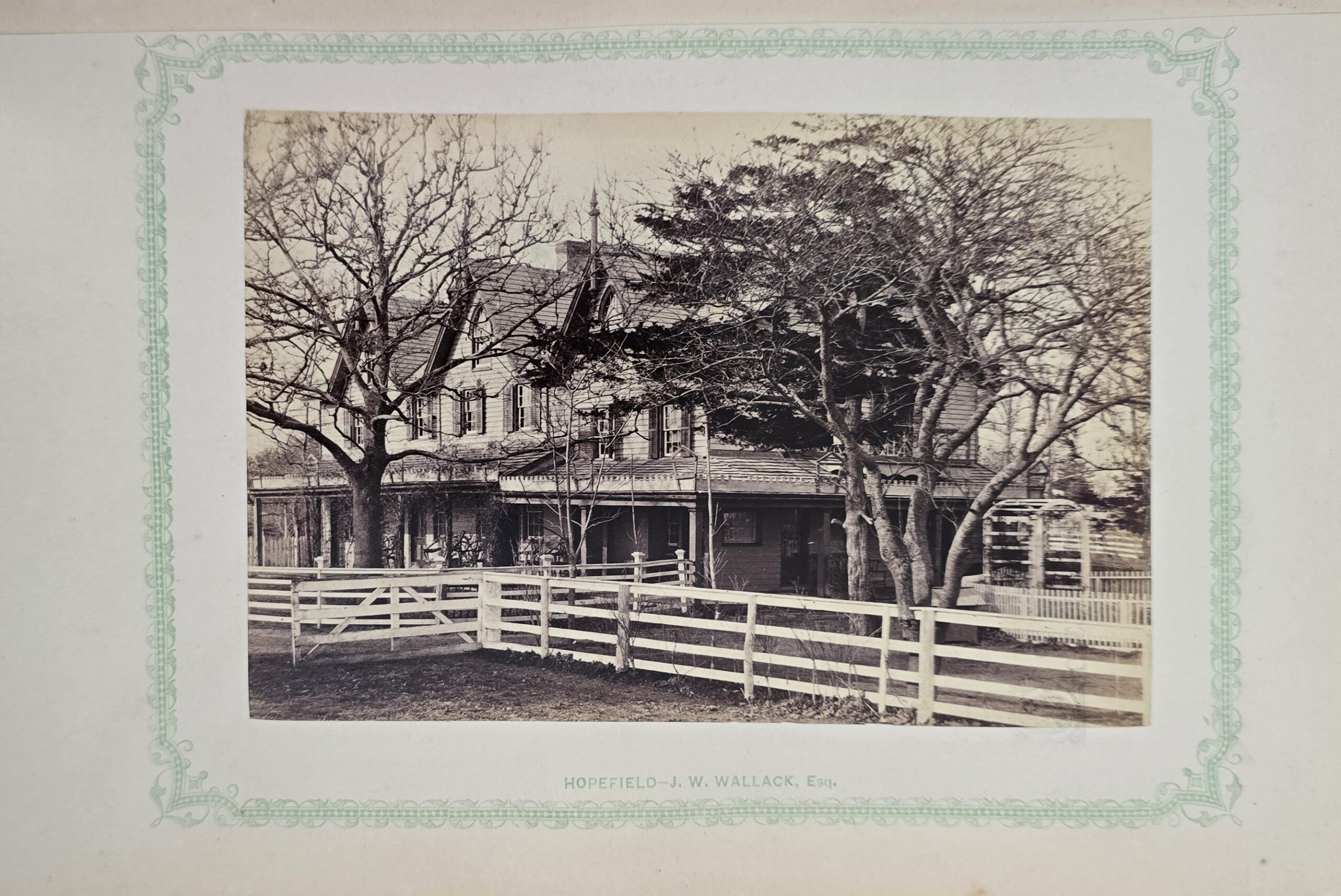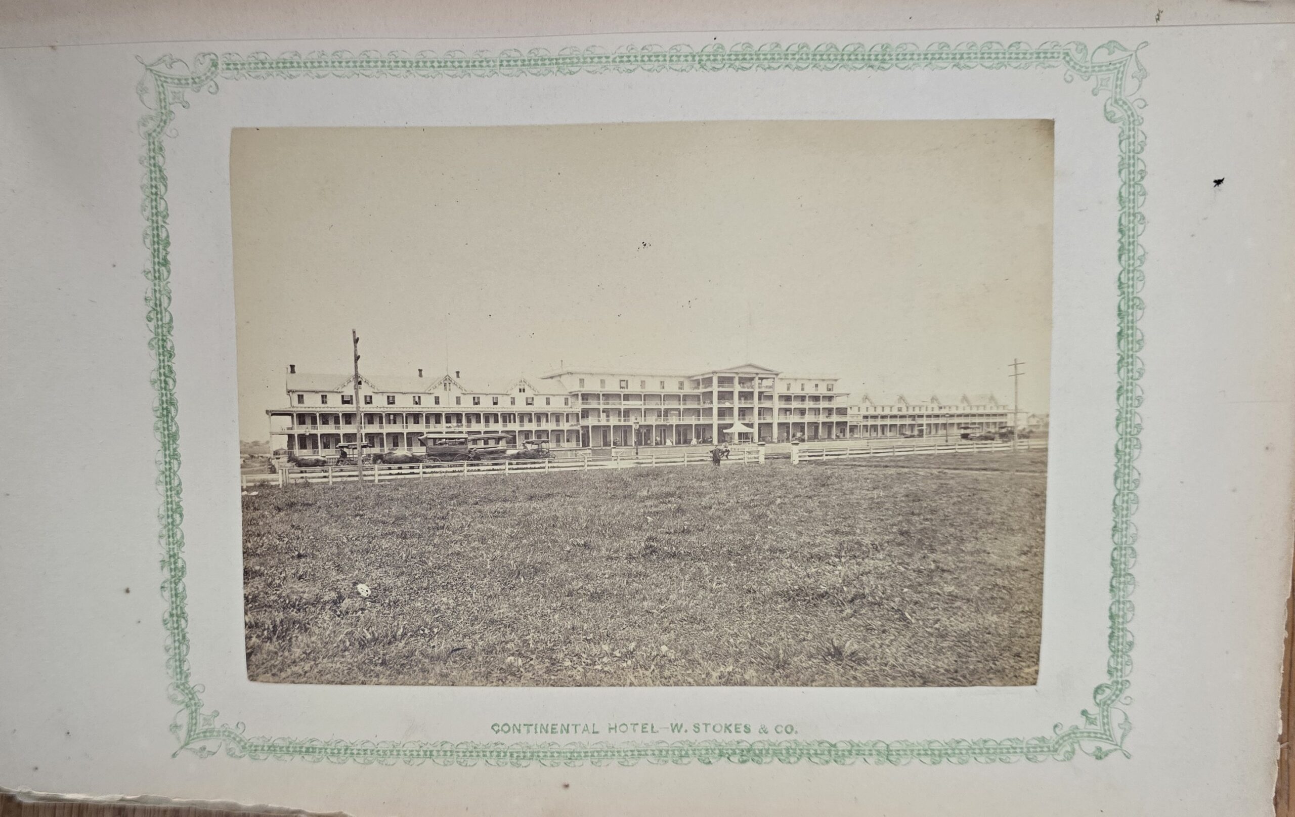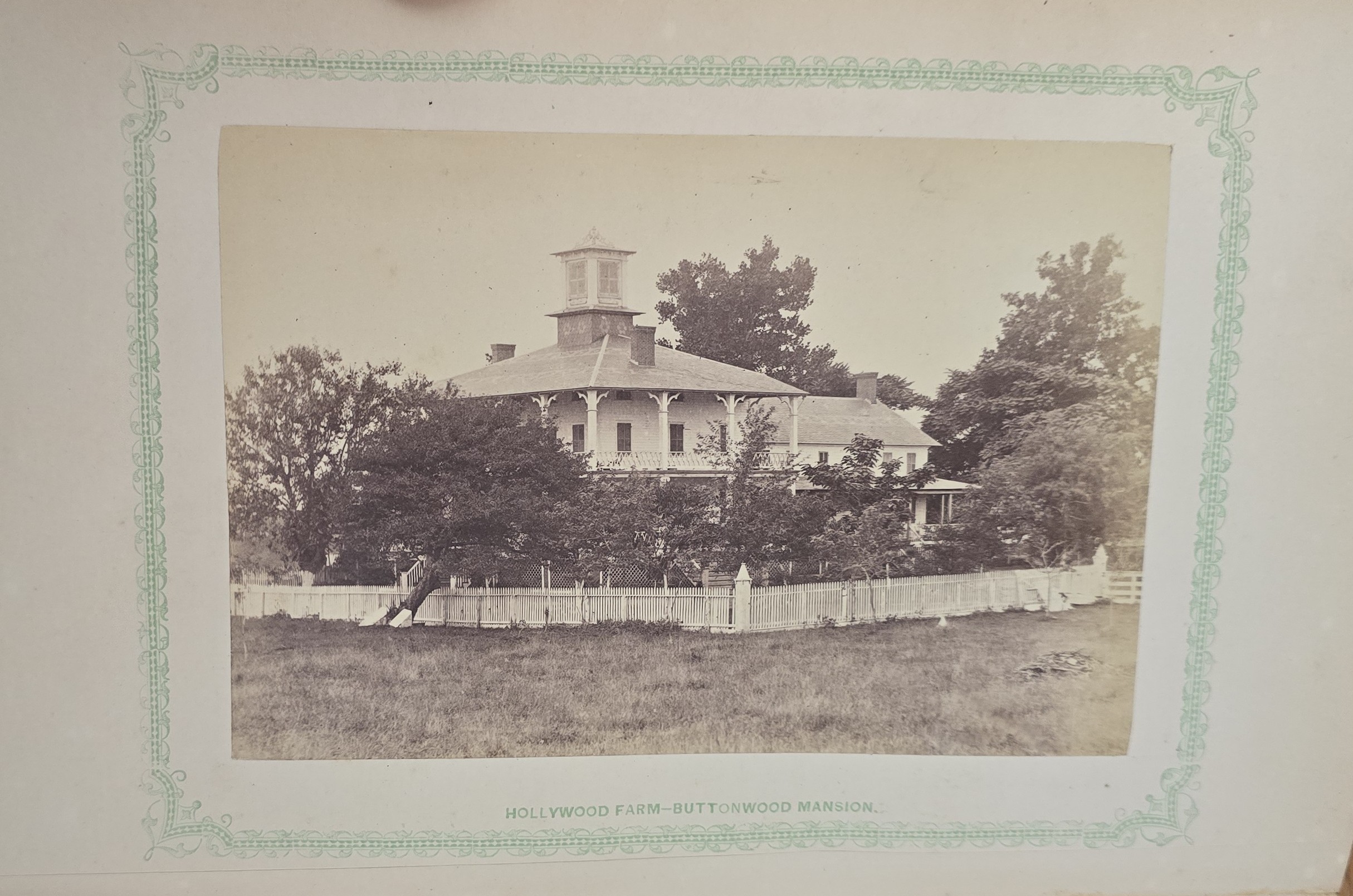 Schenck, J.H. Album of Long Branch: a Series of Photographic Views, with Letter-Press Sketches. New York: John F. Trow, 1868. First edition of this rare photographic book with 74 (of 78) albumen photos of homes and buildings of this beautiful Victorian sea-side community. Octavo. 161, [1, blank] pages. Title-page printed in red and black. With thirty-seven (of thirty-nine) inserted leaves of two albumen photographs each, all reckoned within pagination. Publisher’s full green cloth over beveled boards, covers decoratively ruled and stamped in blind, front cover and spine lettered in gilt. Binding worn and soiled, text shaken with several loose pages (some of which are torn and otherwise damaged), lacking mounted photographic leaves (pages 11/12 and 143/144), as well as text leaf 145/146. Still, a fair copy of this very rare and lovely book.