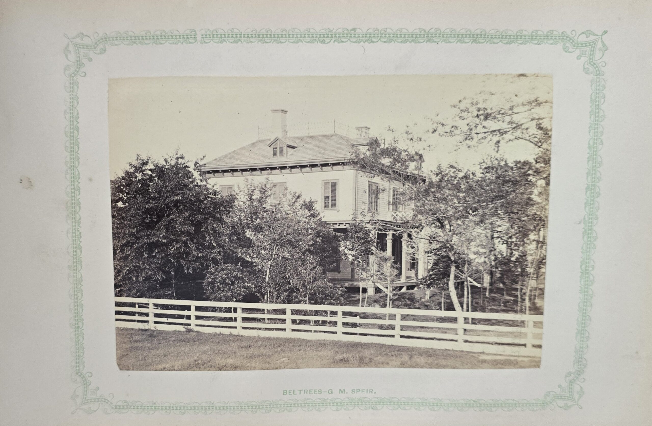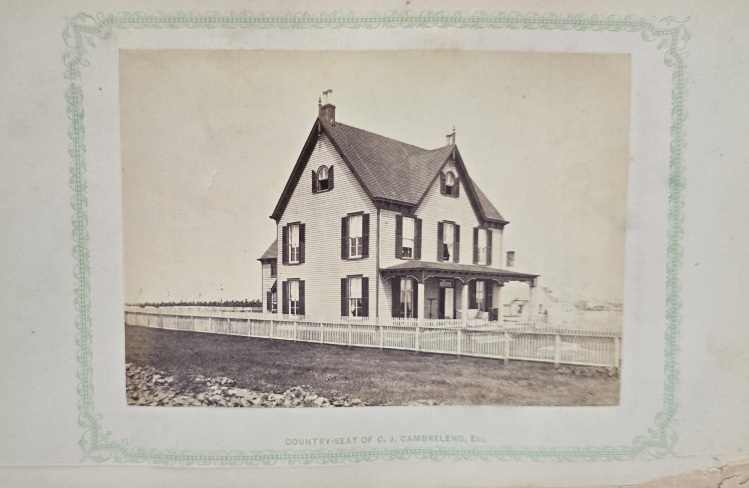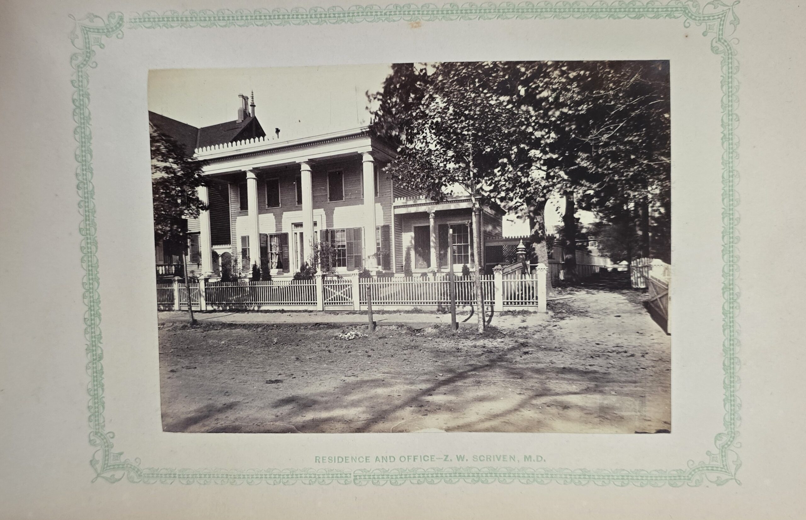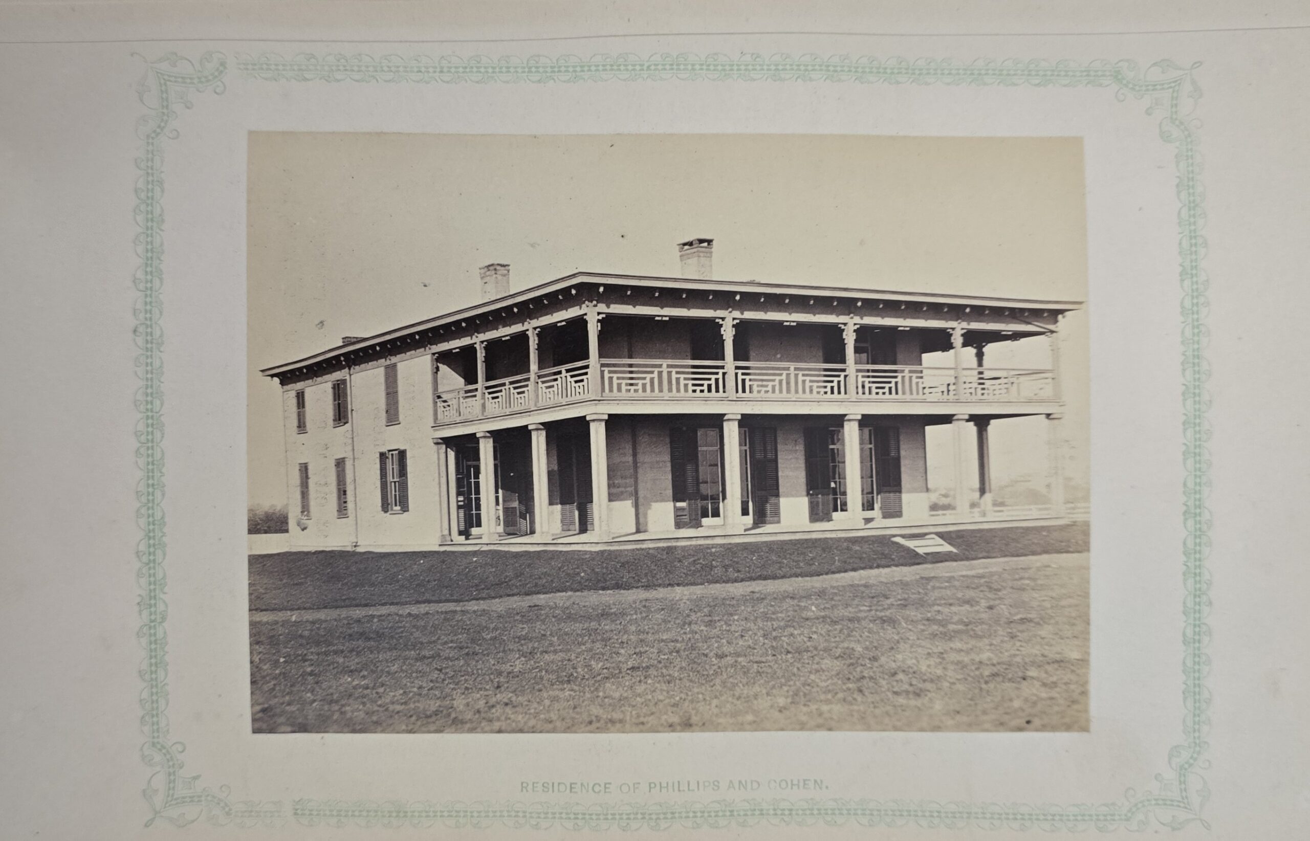 Schenck, J.H. Album of Long Branch: a Series of Photographic Views, with Letter-Press Sketches. New York: John F. Trow, 1868. First edition of this rare photographic book with 74 (of 78) albumen photos of homes and buildings of this beautiful Victorian sea-side community. Octavo. 161, [1, blank] pages. Title-page printed in red and black. With thirty-seven (of thirty-nine) inserted leaves of two albumen photographs each, all reckoned within pagination. Publisher’s full green cloth over beveled boards, covers decoratively ruled and stamped in blind, front cover and spine lettered in gilt. Binding worn and soiled, text shaken with several loose pages (some of which are torn and otherwise damaged), lacking mounted photographic leaves (pages 11/12 and 143/144), as well as text leaf 145/146. Still, a fair copy of this very rare and lovely book.