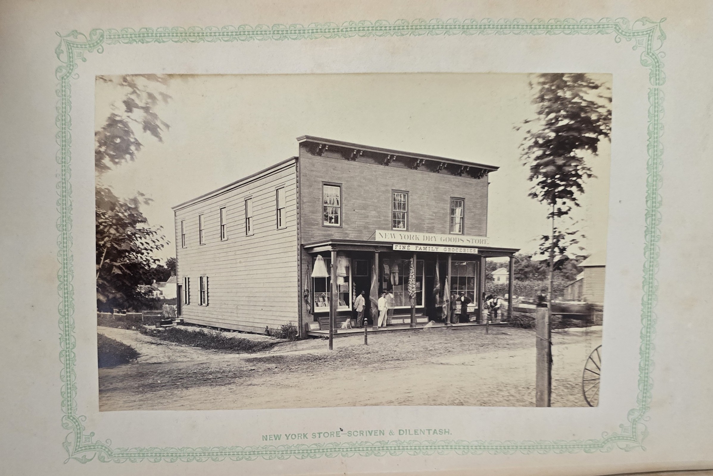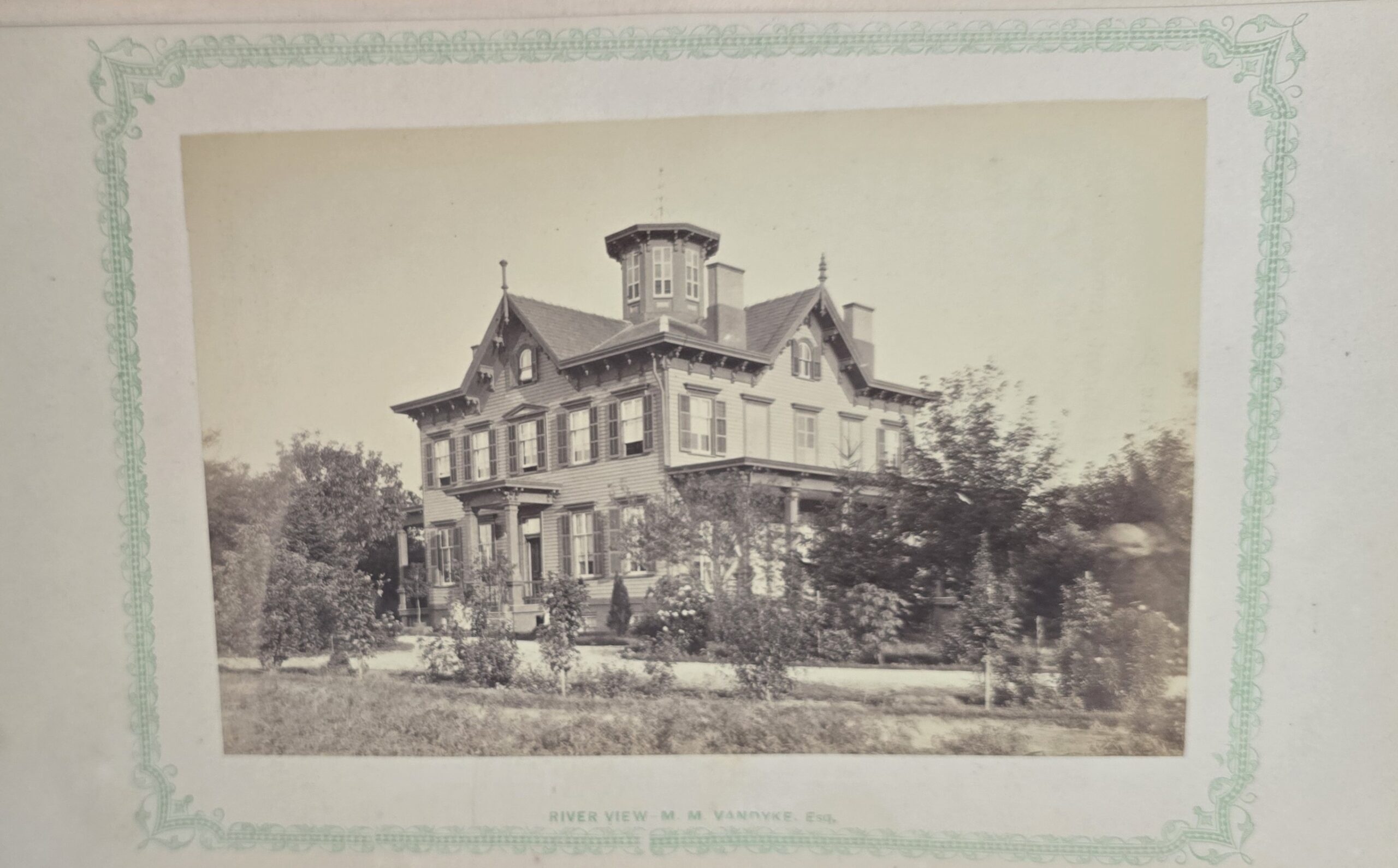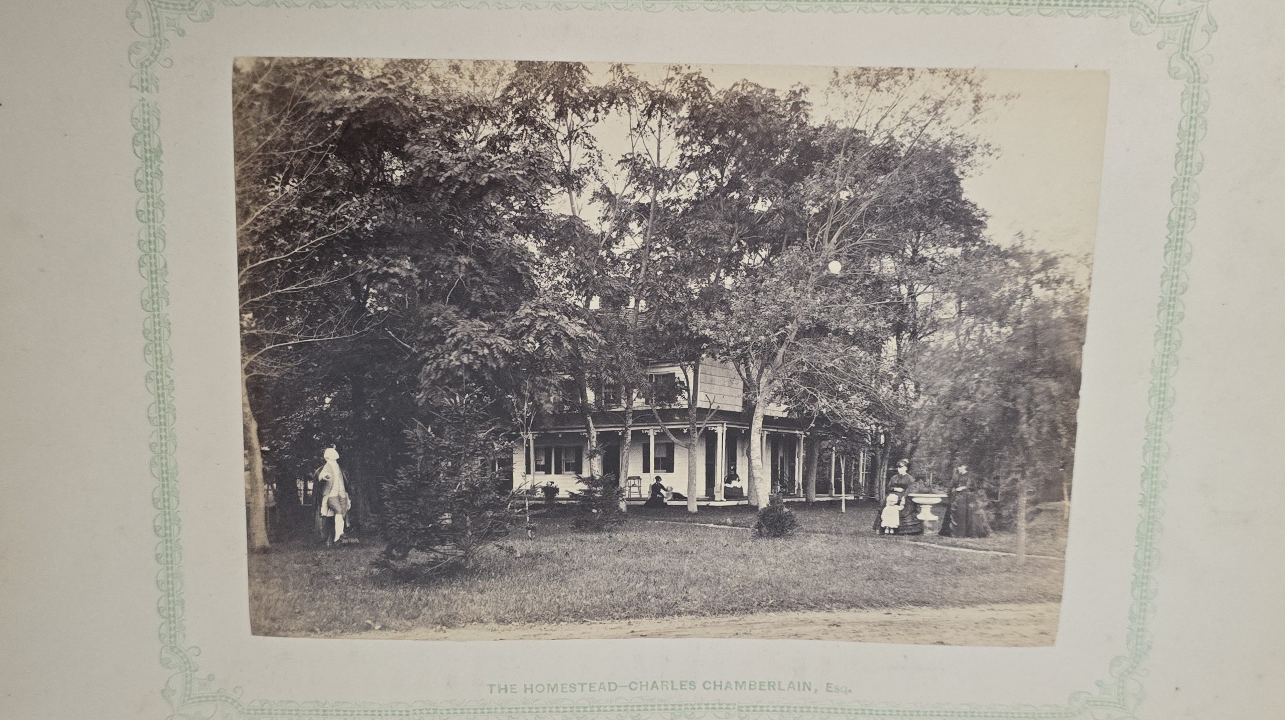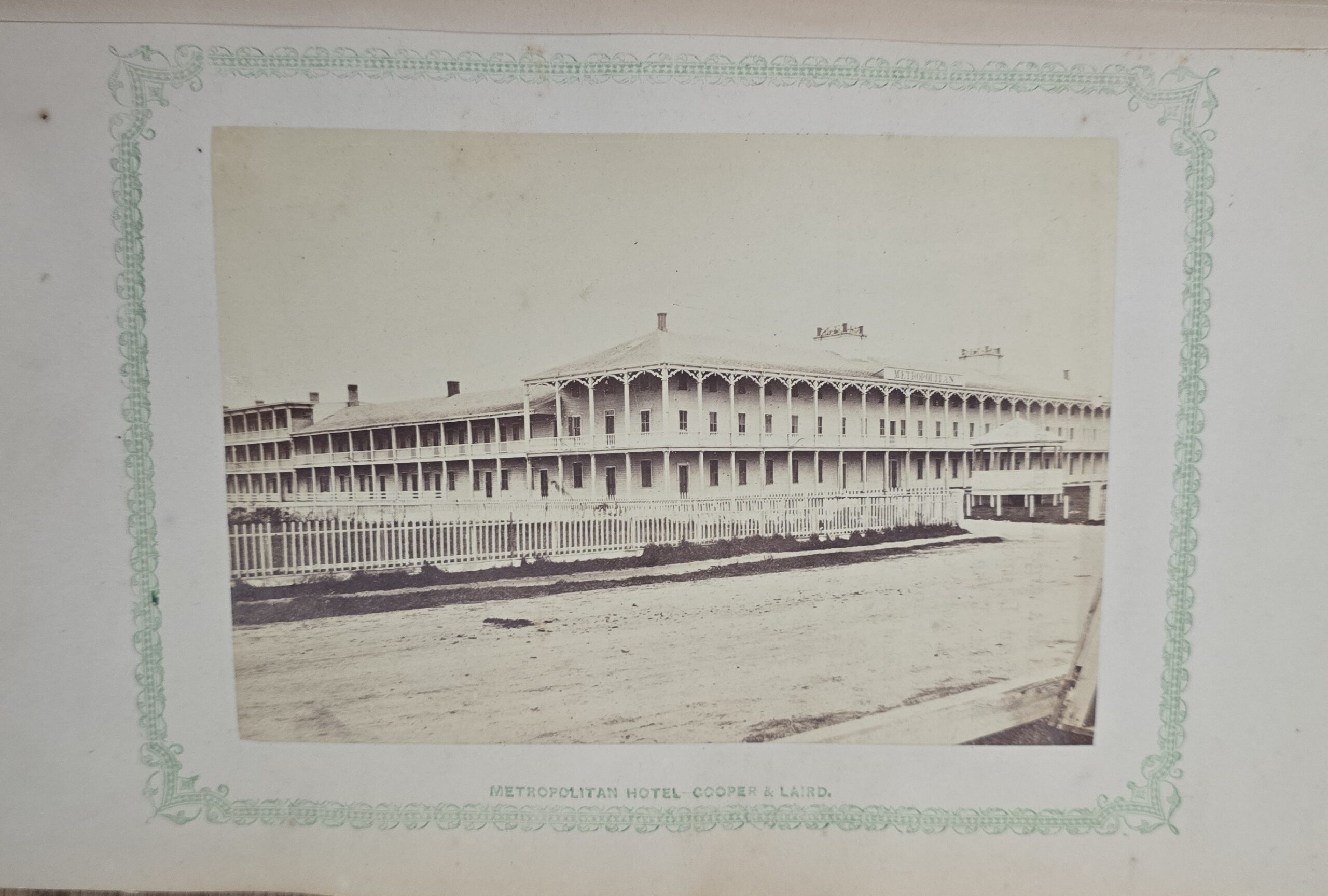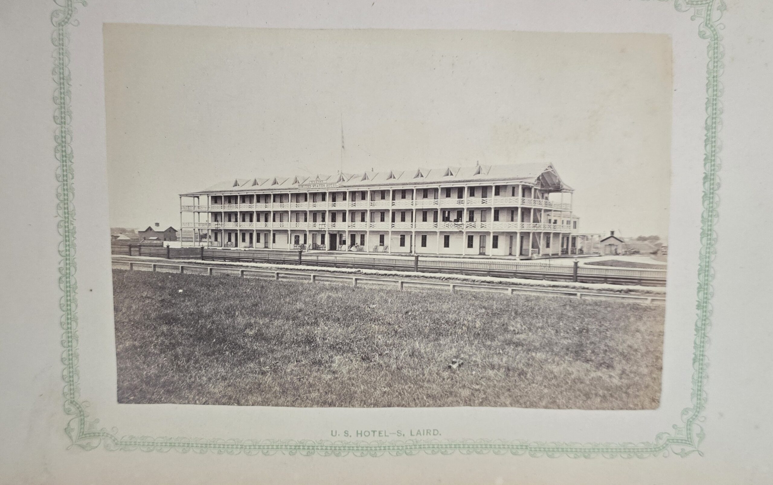 Schenck, J.H. Album of Long Branch: a Series of Photographic Views, with Letter-Press Sketches. New York: John F. Trow, 1868. First edition of this rare photographic book with 74 (of 78) albumen photos of homes and buildings of this beautiful Victorian sea-side community. Octavo. 161, [1, blank] pages. Title-page printed in red and black. With thirty-seven (of thirty-nine) inserted leaves of two albumen photographs each, all reckoned within pagination. Publisher’s full green cloth over beveled boards, covers decoratively ruled and stamped in blind, front cover and spine lettered in gilt. Binding worn and soiled, text shaken with several loose pages (some of which are torn and otherwise damaged), lacking mounted photographic leaves (pages 11/12 and 143/144), as well as text leaf 145/146. Still, a fair copy of this very rare and lovely book.