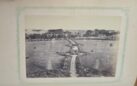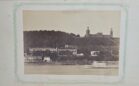 Woodbury, Augustus, Chaplain of the Regiment. A Narrative of the Campaign of the First Rhode Island Regiment, in the Spring and Summer of 1861. Providence: Sidney S. Rider, 1862. Signed by John R. Bartlett at top right of the title page. There are 17 tipped-in photographs in the book. The frontispiece is a photo of Burnside, 4.5″ x 3.5.” The rest of the images are CDV size. Titles are: Rev. Augustus Woodbury; Major Balch; Falls Church; Fairfax Court House; Sudley Church, Bull Run; Hetacomb at Sudley Church where over 100 Federal troops were buried; Mathews’ House used for a hospital during Battle; Sudley Ford and Church, Bull Run; Sudley Ford, Bull Run; Stone Bridge, Bull Run; Fortifications at Manassas; Earl Carpenter; Col. J.S. Slocum; Lieut. Prescott; Long Bridge Across the Potomac; & Stone Church Centreville. The images are in VG-E condition. There are also many steel engravings of generals, scenes, Lincoln, etc. bound in as well a map of Bull Run. The book measures 10.25″ x 7.25,” in original old boards. There is an old waterstain along the top of the volume, which can be seen along the top of many pages and down to center on the title page. The images are not effected by the waterstain. There are some old newspaper reviews laid in. A very rare volume with 17 tipped-in photos. All copies that I have been able to find have just one image tipped-in. G. $3000