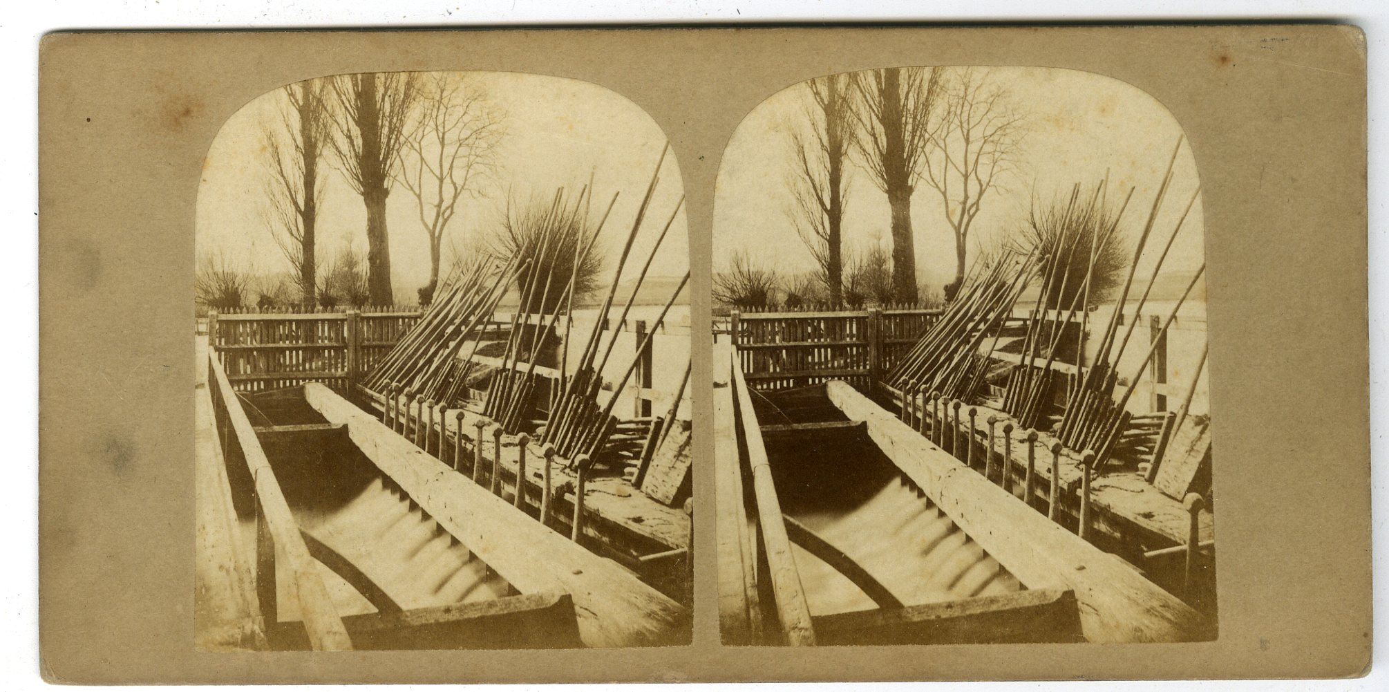 BI87. F.M., London. The “Modern” Series of Stereoscopic Slides. Punt Fishing at Benson Weir, Oxford. VG. $35