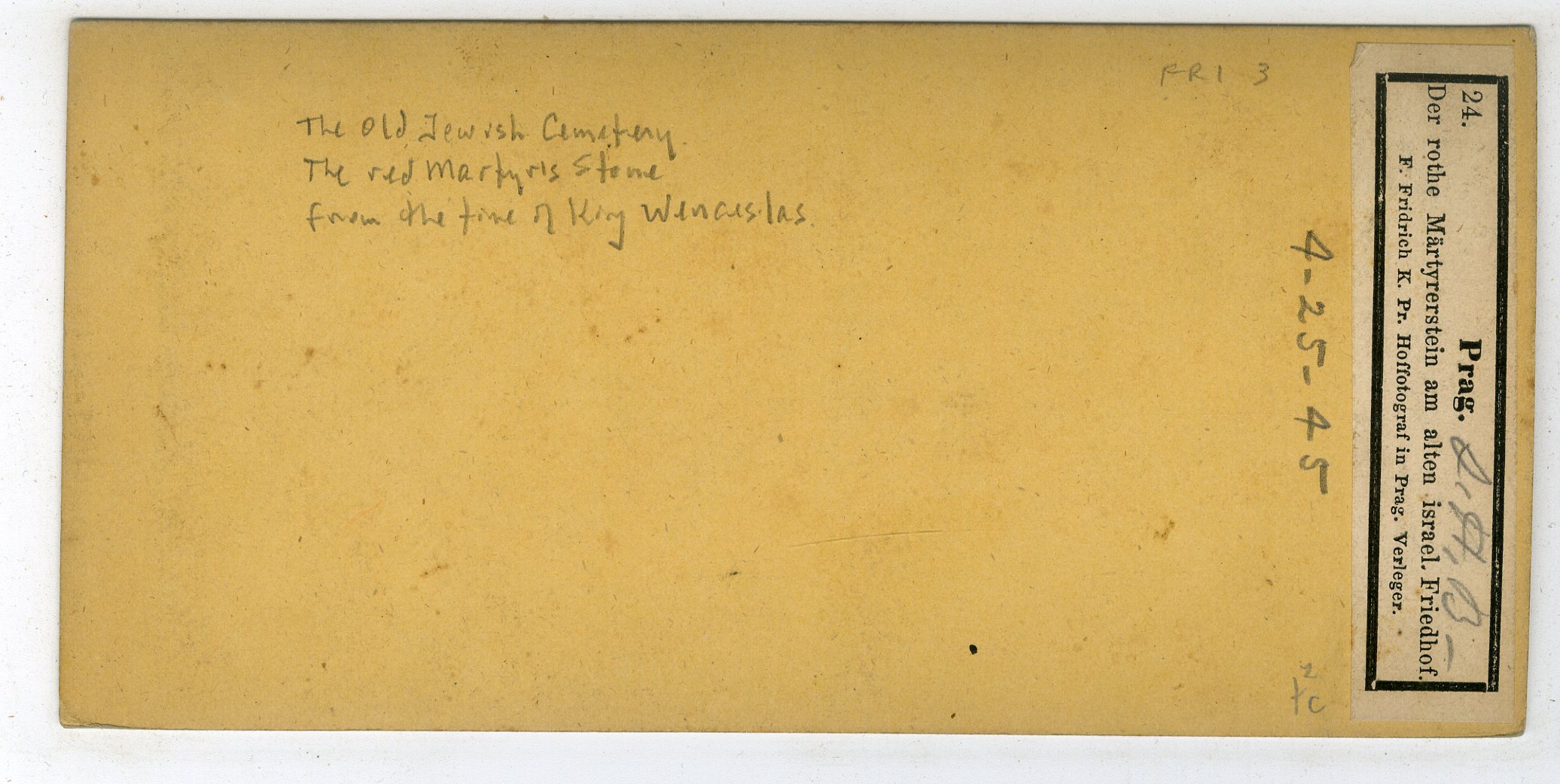 CM21. F. Fridrich. Prag. The Old Jewish Cemetery. The Red Martyr’s Stone from the time of King Wenceslas. VG. $75