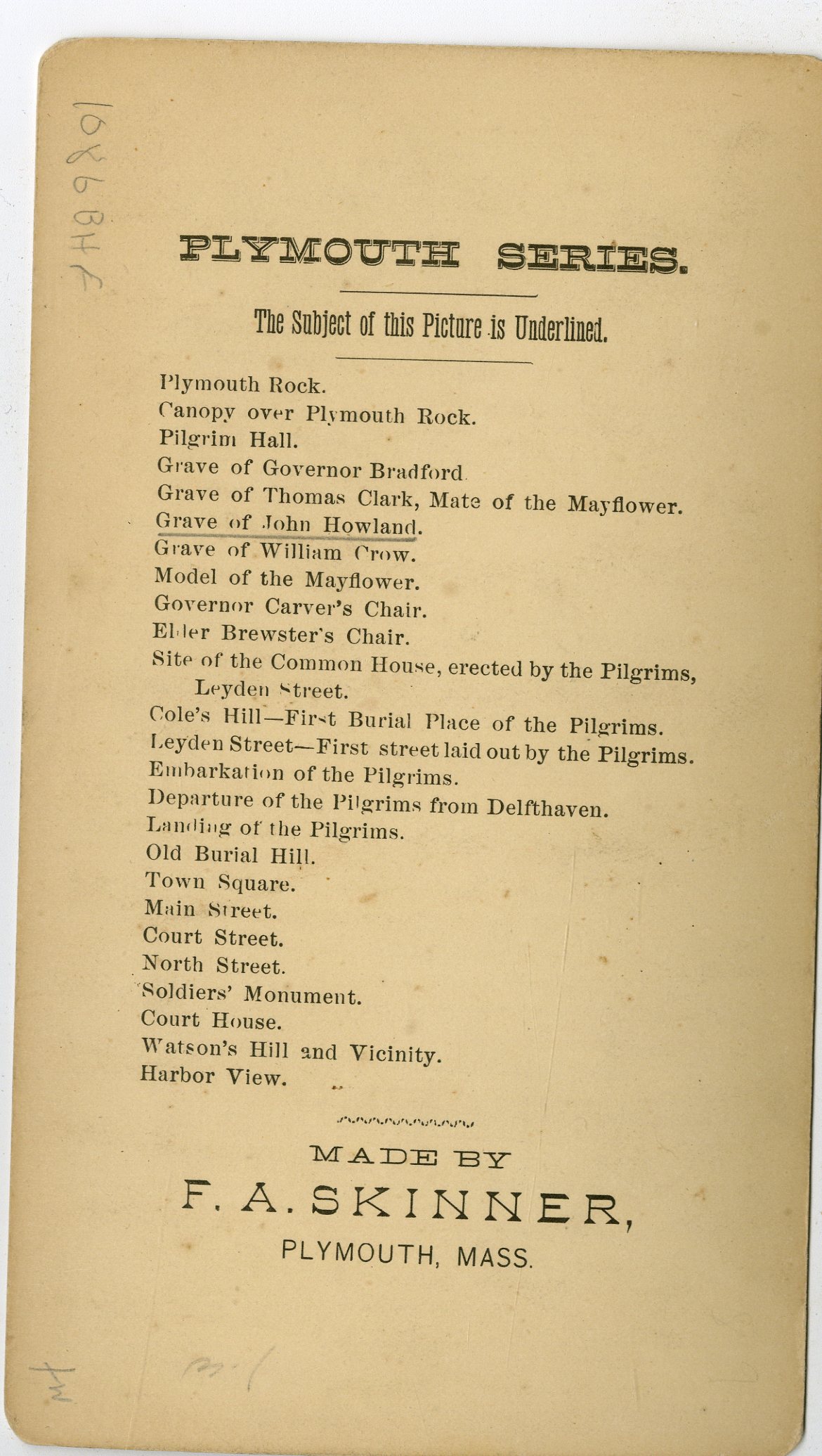 CM29. F.A. Skinner, Plymouth, Mass. Grave of John Howland. VG. $25