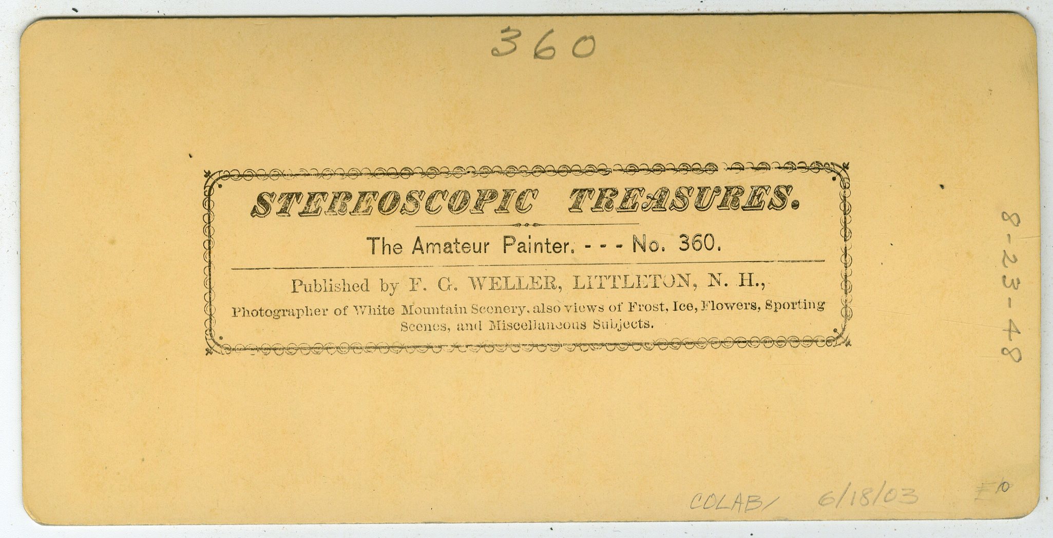 CH142. F.G. Weller, Littleton, N.H. The Amateur Painter. No. 360. VG. $12