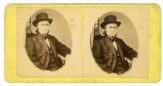 CW1531. Very rare stereoview of Albert James Myer (9/20/28-8/24/80), founder of the U.S. Army Signal Corps. Taken during the Peninsula campaign, 1862. VG. Image 3 of 3.