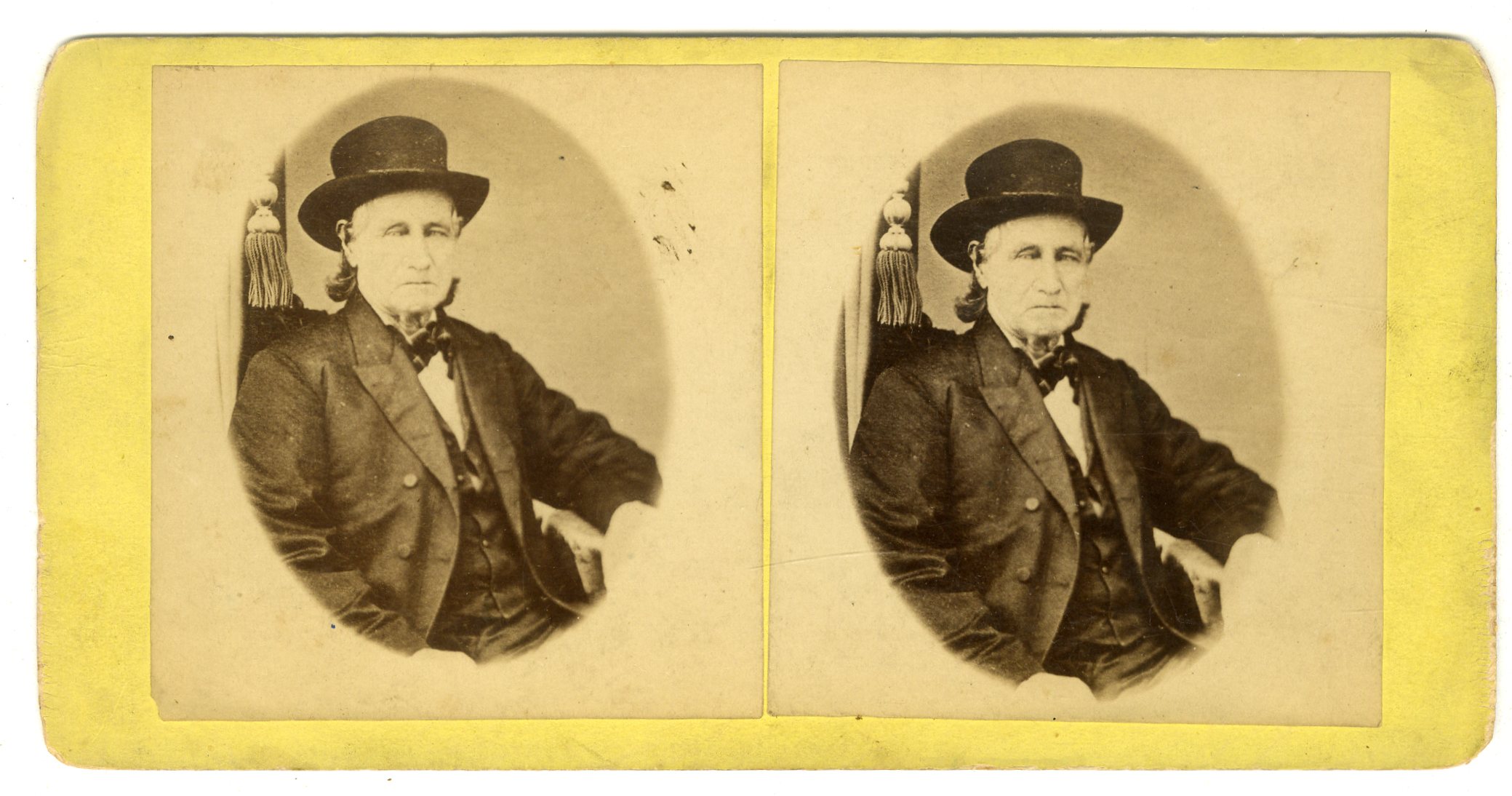 CW1812. Stereoview with the following written on verso: “#249. John Burns, Hero of Gettysburg. An old citizen of the town who shouldered his musket and helped to defend his country’s flag.” VG. $150