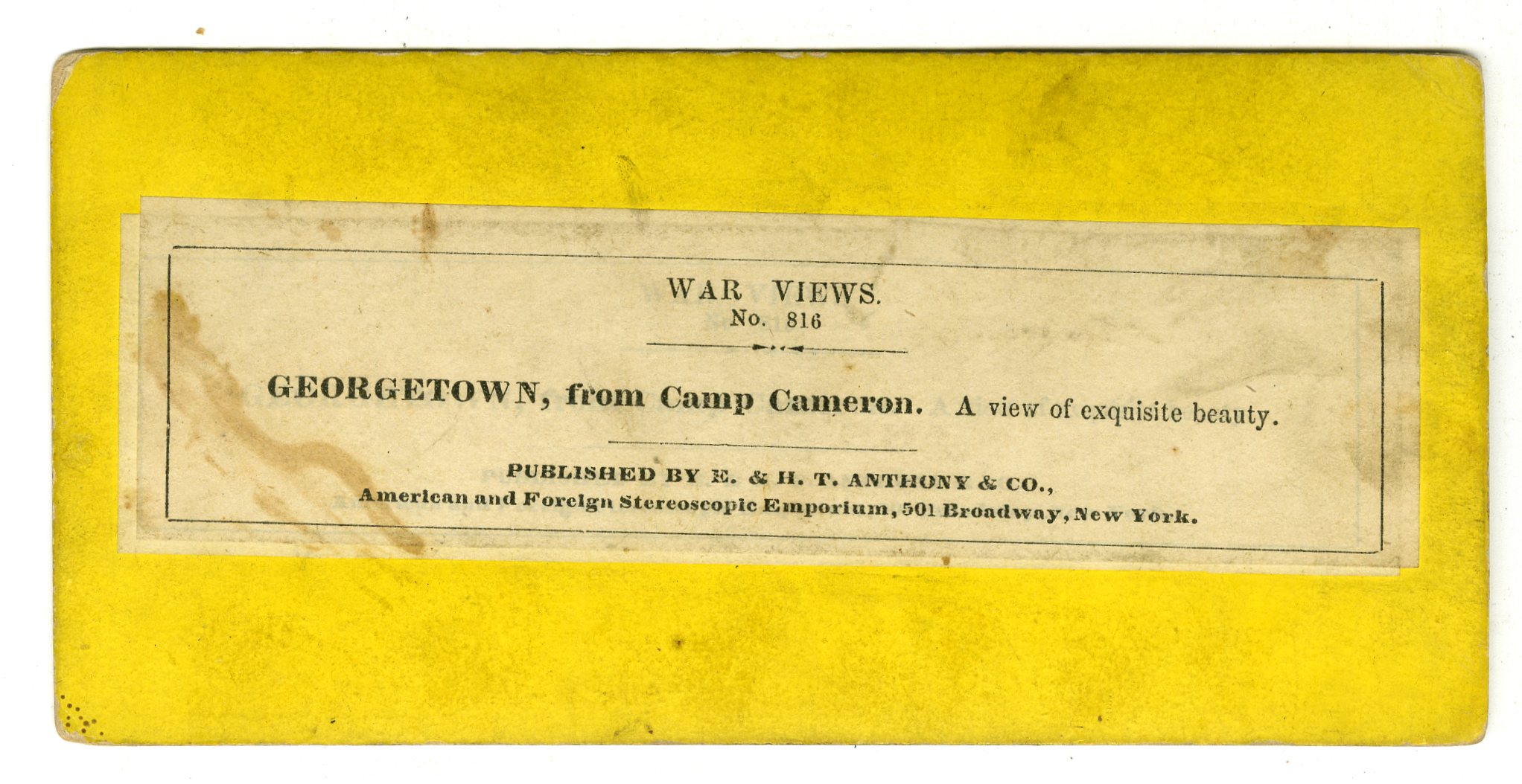 CW1821. E&HT Anthony. War Views. No. 816. Georgetown, from Camp Cameron. A view of exquisite beauty. Fair. $40