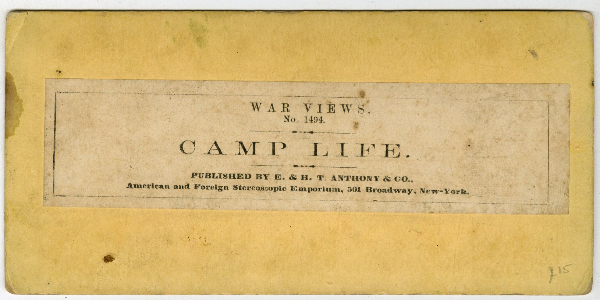CW1839. [E&HT Anthony]. Unlabeled. No. 1499. Camp Life, Army of the Potomac. Warrior’s Rest. G. $150