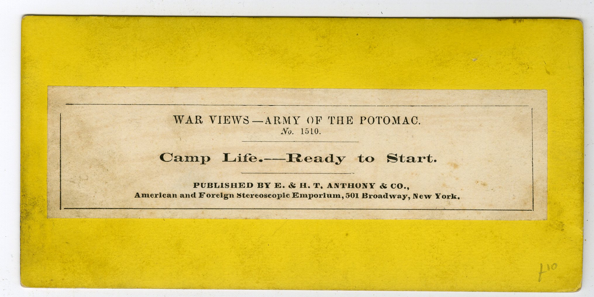 CW1840. E&HT Anthony. War Views. No. 1510. Camp Life.-Ready to Start. VG. $200