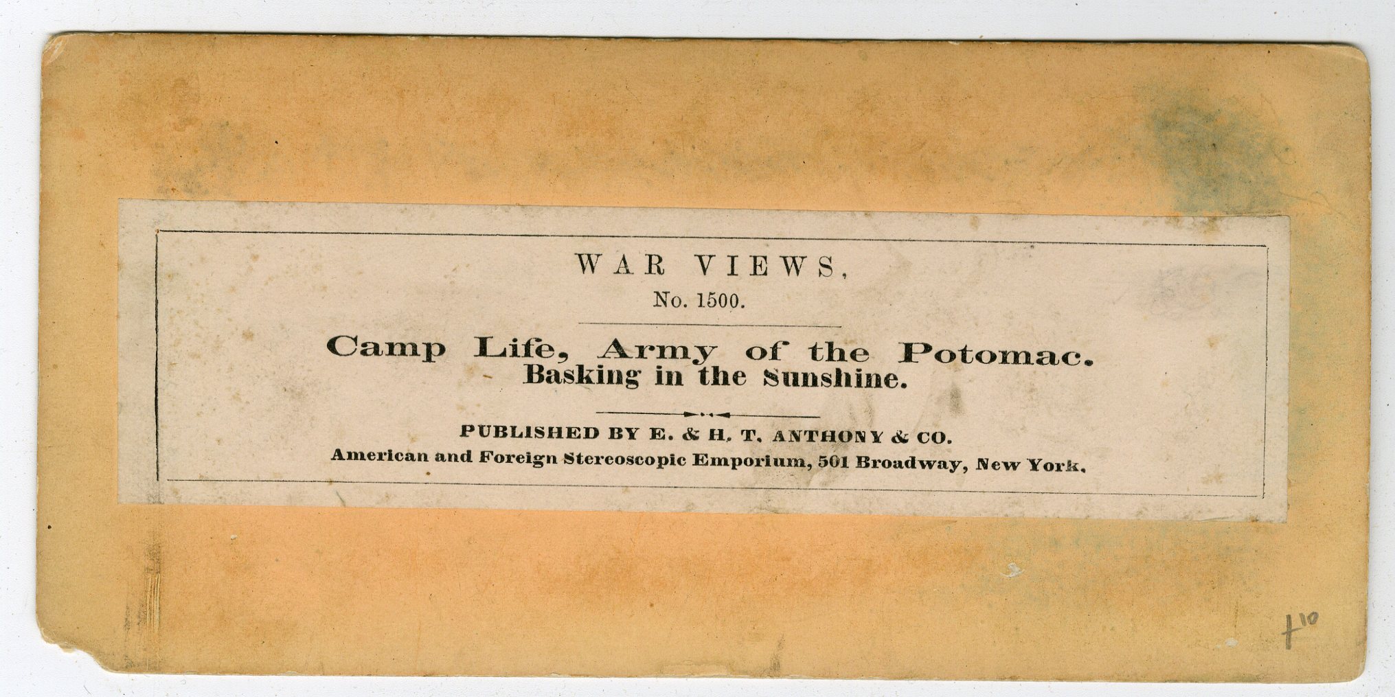 CW1841. E&HT Anthony. War Views. No. 1500. Camp Life. Army of the Potomac. Basking in the Sunshine. G-. $125