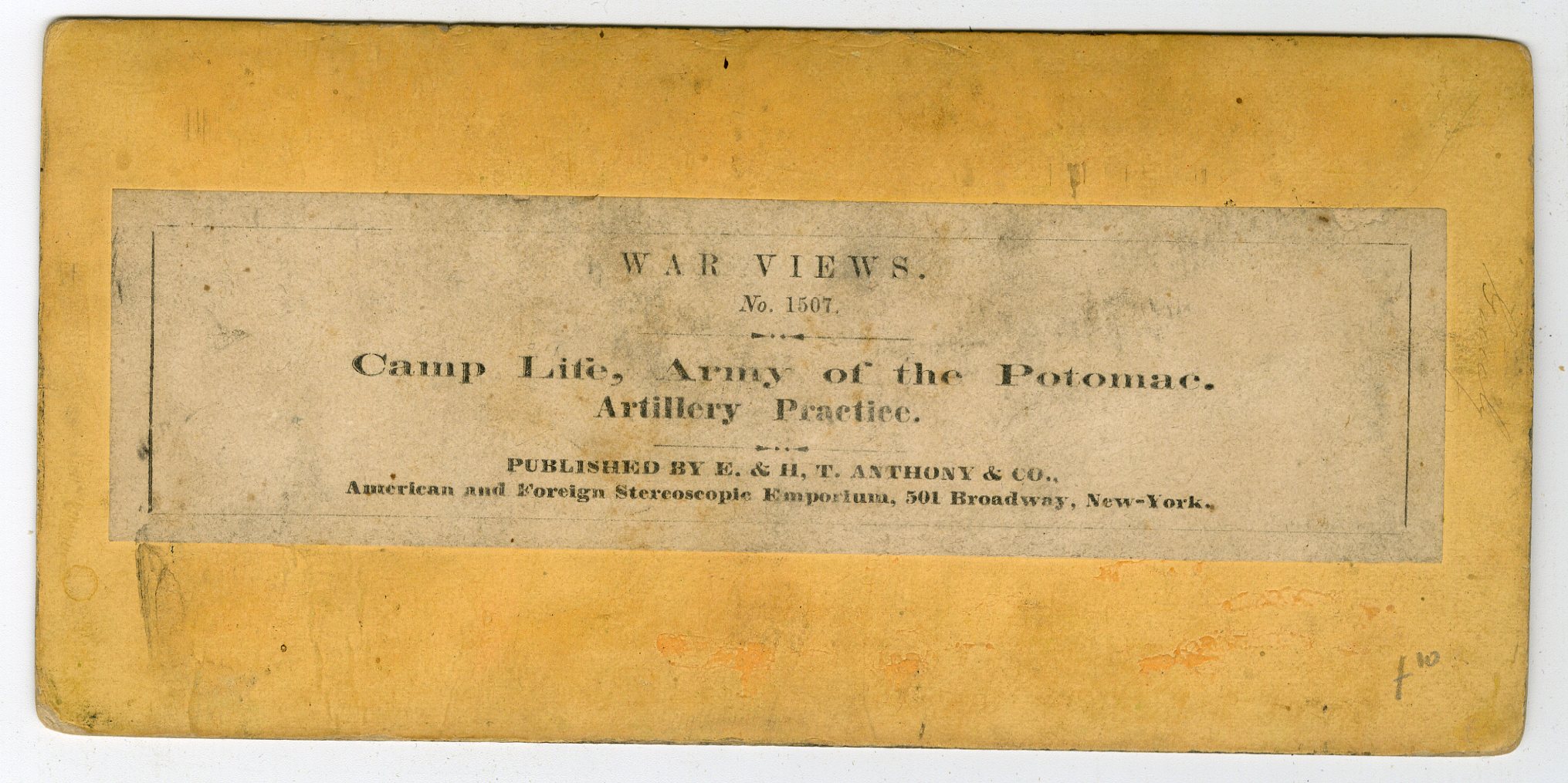 CW1844. E&HT Anthony. War Views. No. 1507. Camp Life. Army of the Potomac. Artillery Practice. G. $175
