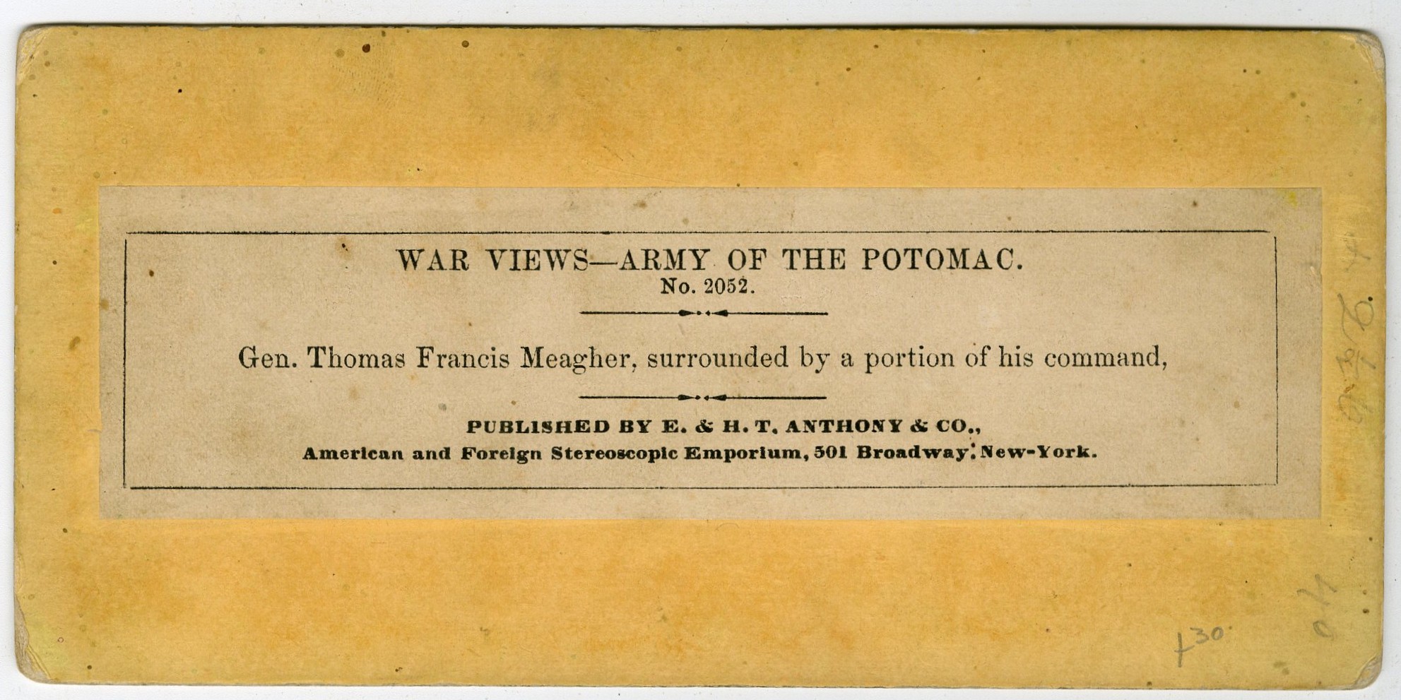 CW1851. E&HT Anthony. War Views. No. 2052. Gen. Thomas Francis Meagher, surrounded by a portion of his command. 69th NY Zouaves, the Irish Brigade. G. $500