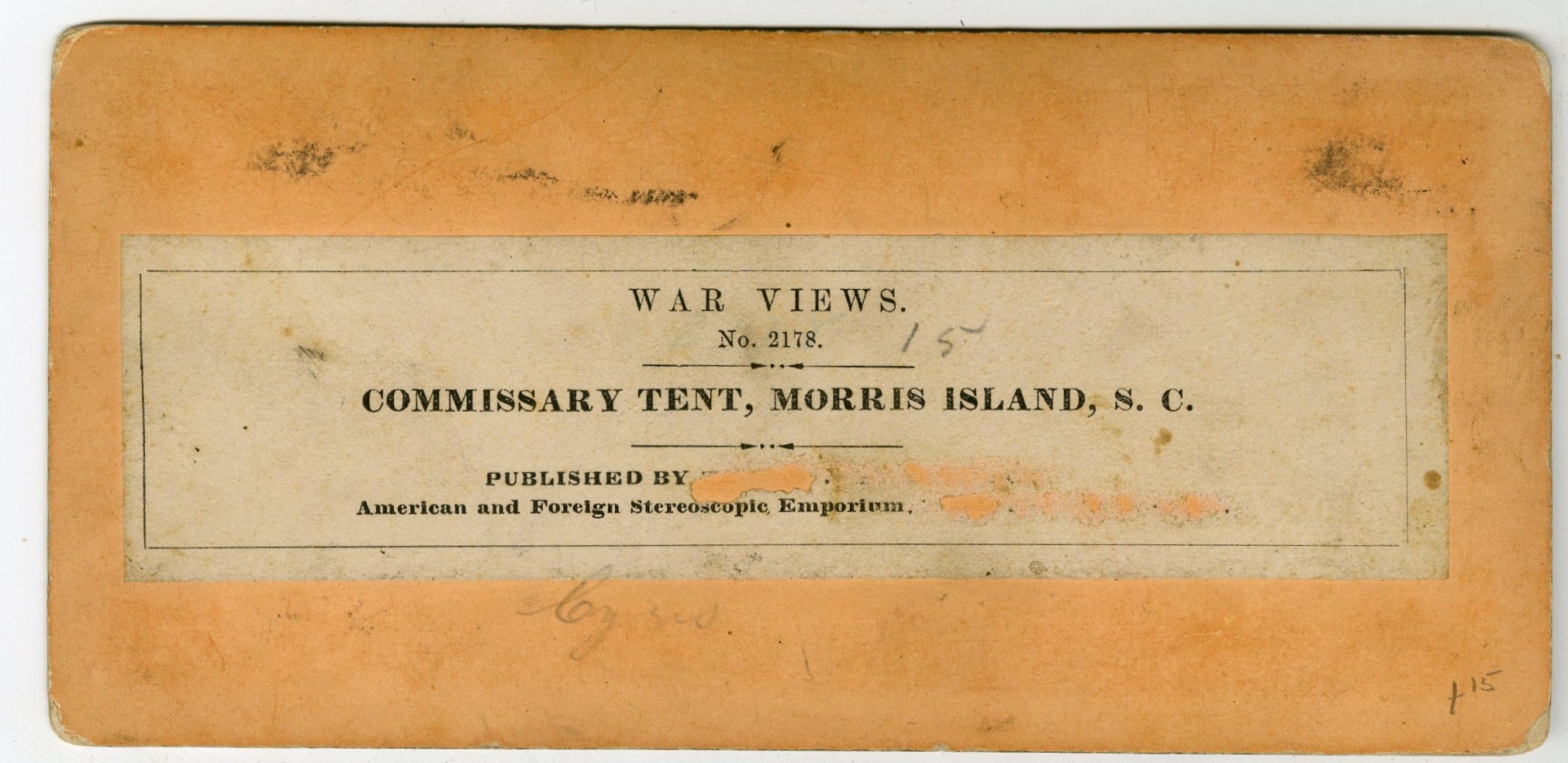 CW1855. E&HT Anthony. War Views. No. 2178. Commissary Tent, Morris Island, S.C. G. $275