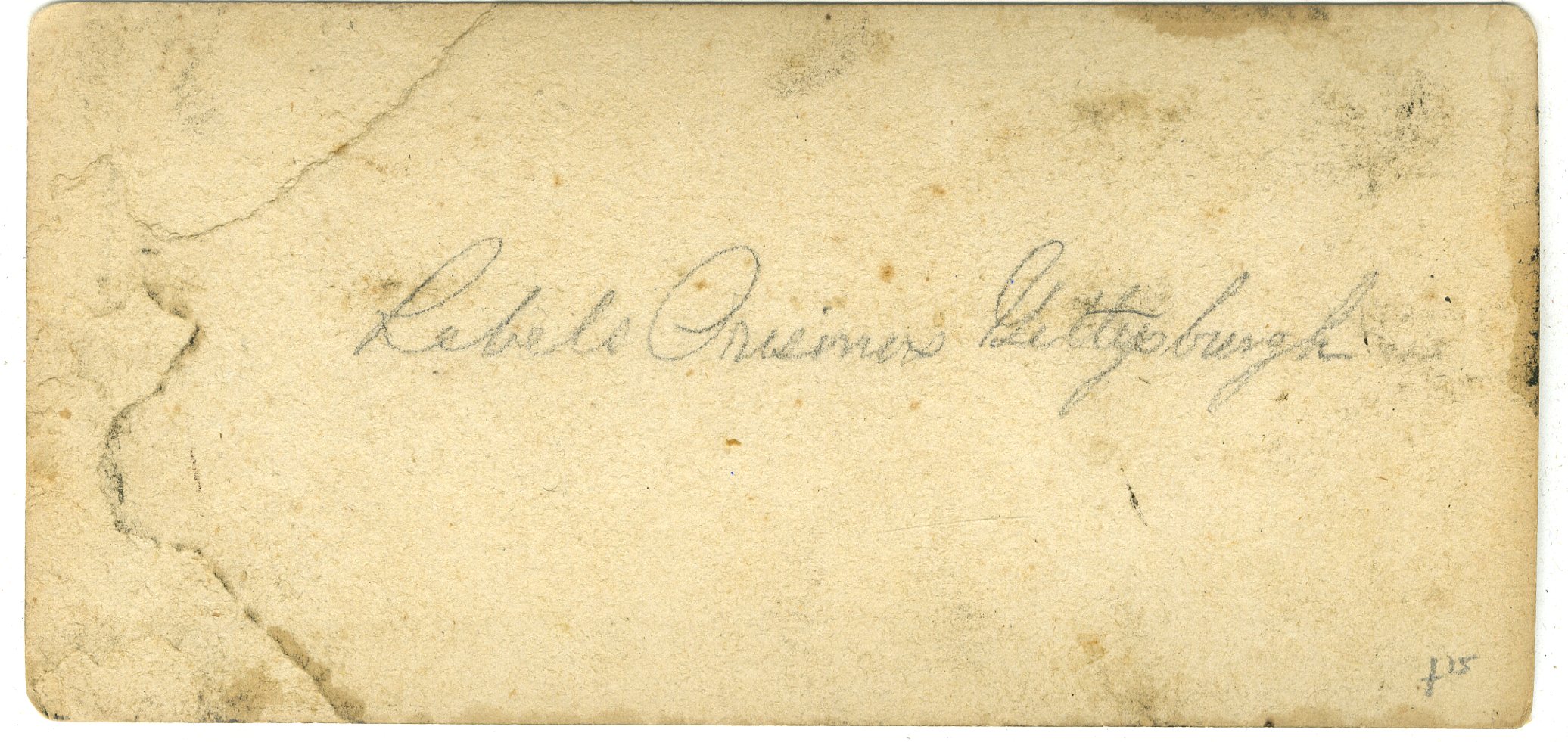 CW1653. Man in uniform seated at desk. This is an unknown image that I’ve not seen before. Nothing is written on the card, front or back. Maybe someone viewing the image can identify the sitter. It is un unusual pose for a Civil War soldier. VG. $100