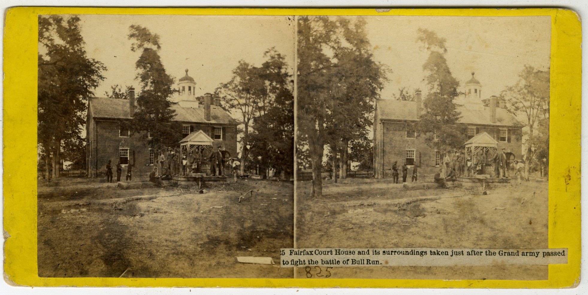 CW1860. [E&HT Anthony]. No. 825. Fairfax Court House and its surroundings taken just after the Grand Army passed to fight the Battle of Bull Run. G. $150