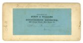 CT163. Stereoview showing a group of workmen in the process of moving a piano or organ into the second floor of a home. C.M. Loomis’s Temple of Music delivery wagon sits out front. The instrument hangs in the air as the workers pose for the photo. The instrument is covered with blankets to protect it from damage. The verso of the card is an advertisement for Loomis’s business, New Haven, Conn. An extremely unusual occupational image. VG. $75