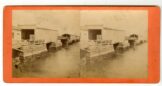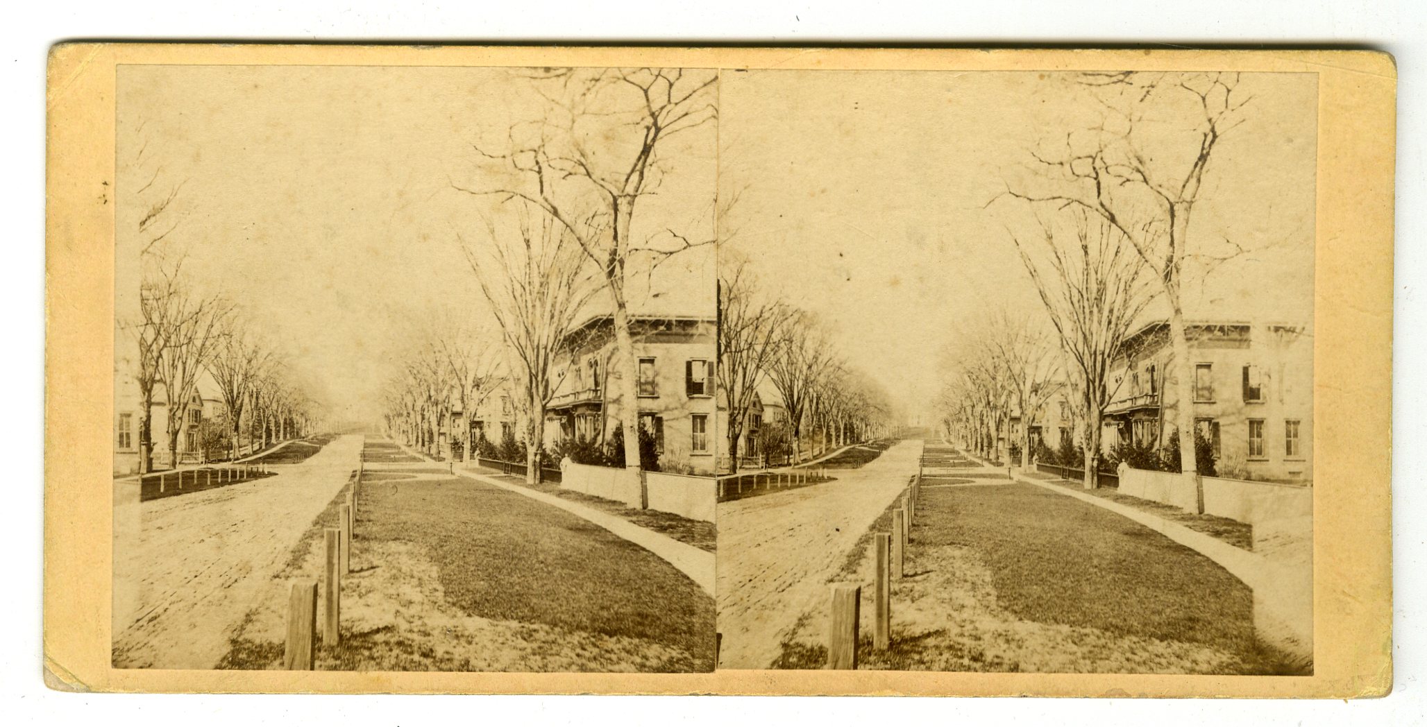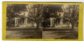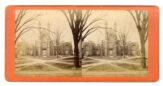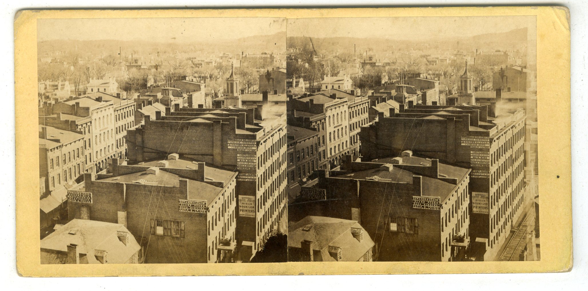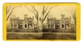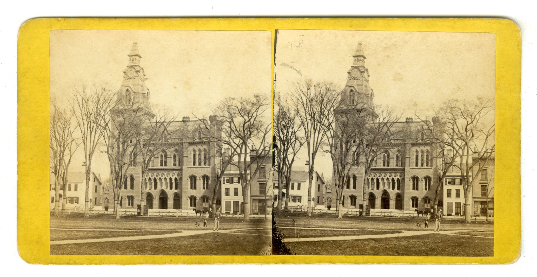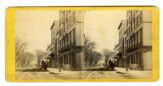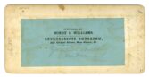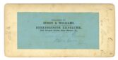 CT163. Stereoview showing a group of workmen in the process of moving a piano or organ into the second floor of a home. C.M. Loomis’s Temple of Music delivery wagon sits out front. The instrument hangs in the air as the workers pose for the photo. The instrument is covered with blankets to protect it from damage. The verso of the card is an advertisement for Loomis’s business, New Haven, Conn. An extremely unusual occupational image. VG. $75