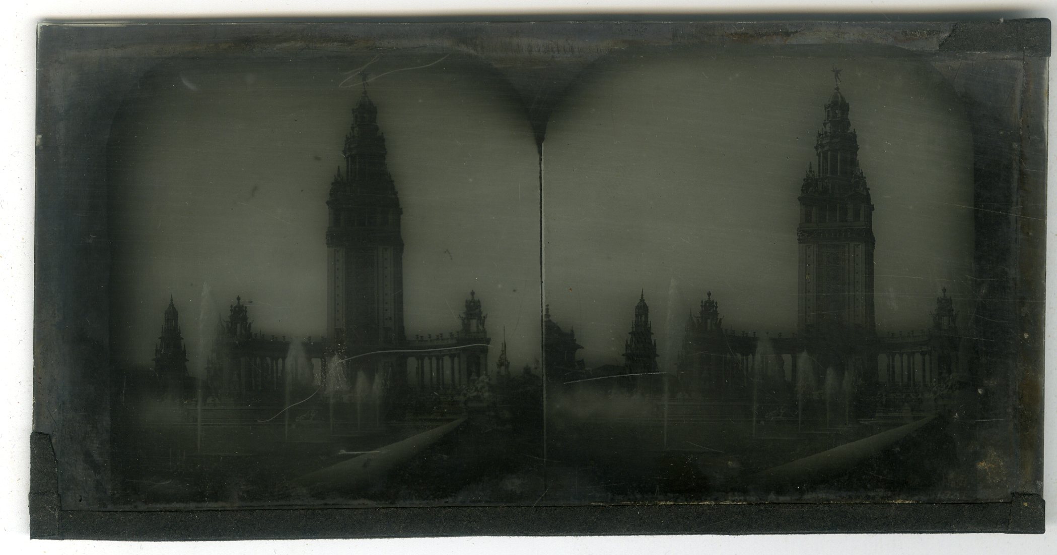 GL180. No photographer ID. Hudson Fulton Celebration, 155th St., NY. Sep. 25, 1909. Note chipped glass at upper right. Image is in color. G-. $45