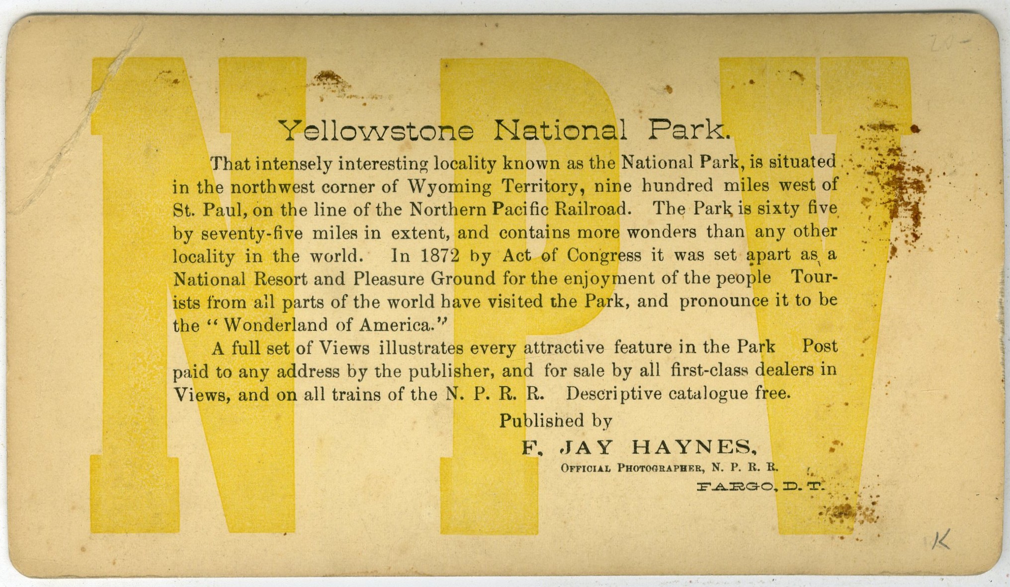 FJ48. F. Jay Haynes, Fargo, D.T. 1001. Formation at Mammoth Hot Springs. G. $10