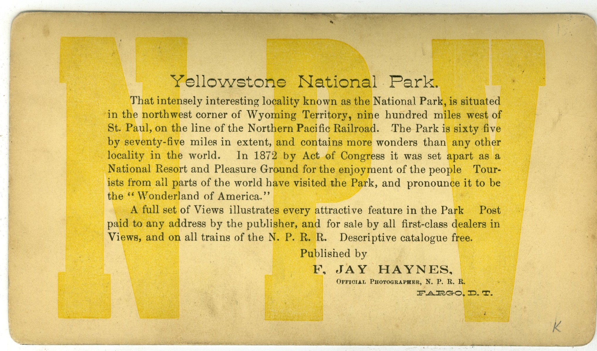 FJ47. F. Jay Haynes, Fargo, D.T. 1262. Tower Falls–Tower Creek. G. $15