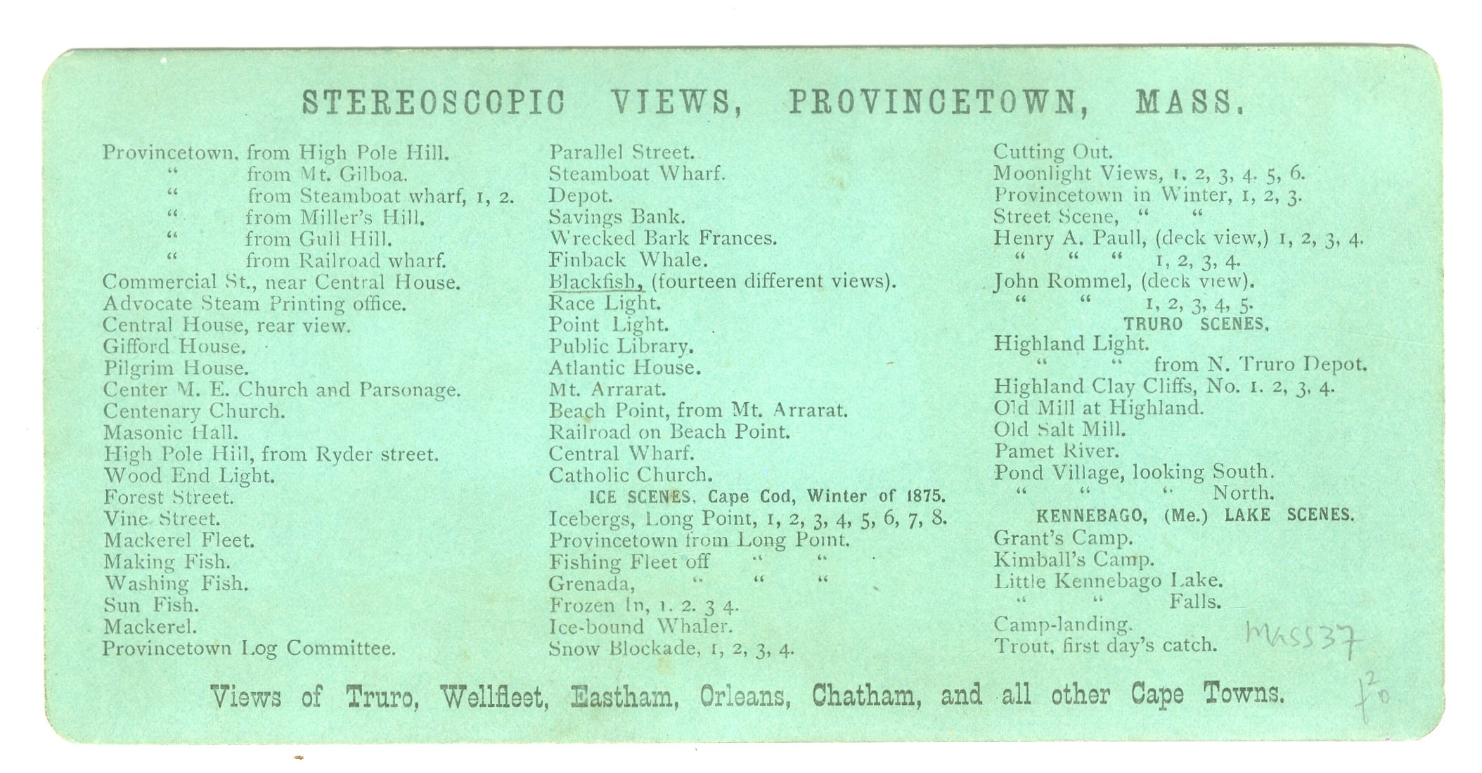 MASS37. G.H. Nickerson, Provincetown. Cape Cod Views. Blackfish. Extensive title listing on label verso. VG. $35