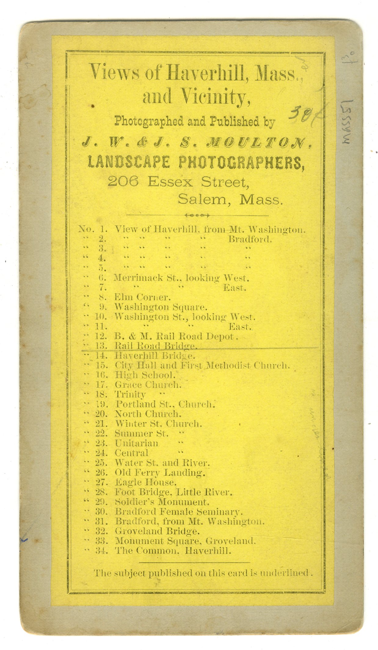 MASS51. J.W. & J. S. Moulton, Salem. No. 13. Rail Road Bridge. VG. $45