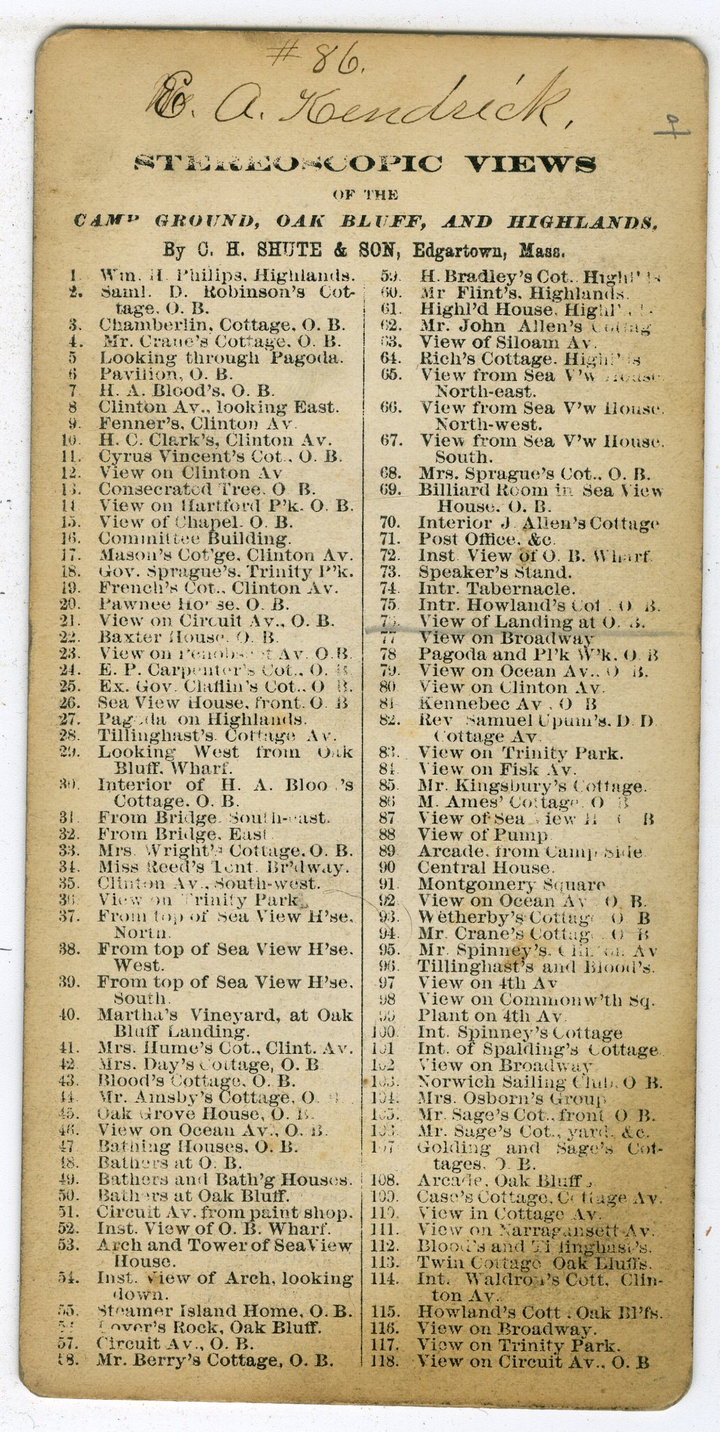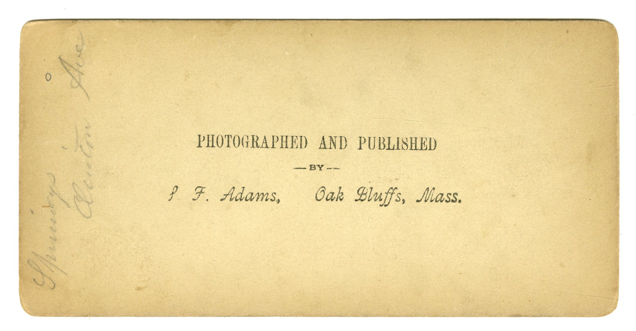 Mass674. S.F. Adams, Oak Bluffs, Mass. Clinton Ave. cottage. Named on verso but it is unclear. G. $15