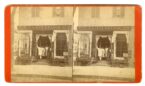 MASS140. [H.P. Moore, Concord, Mass.] Street scene showing the Adams Express Company and other storefronts. Wagons are loaded with packages out front. A knowledgeable collector has identified this view as showing the Jeweler’s Building on Main St. in Worcester. The Adams Express Company was started in May of 1840 by a man named Alvin Adams in Boston. The primary business was the carrying of small parcels, bank drafts and other valuable items between Boston, Worcester, Norwich, New London and New York City with the use of steamboats and railroads. At this time the shipping and delivery business was booming. A number of large local and regional companies such as Livingston, Fargo & Company, Wells & Company, and Butterfield & Wasson were beginning during this year also. The men who put together these companies later on in 1849 put together what we now know as The American Express Company. The business routes of the company expanded rapidly and at the start of the gold rush, a new trans-continental business development was started. Shortly after in 1849, Adams moved to California and started an Adams & Co. This firm was closely related to that of the Eastern company but this one focused on the transportation of gold dust from San Francisco to New York. During the Civil War the Adams Express Company initially acted as paymaster for both the Union and Confederate armies and later set up a separate wholly-owned company called the Southern Express to handle payment of the Southern troops. In 2004, the company observed its 150th year Anniversary. Today the Adams Express Company is still delivering and is a diversified equity investment company. VG. $150