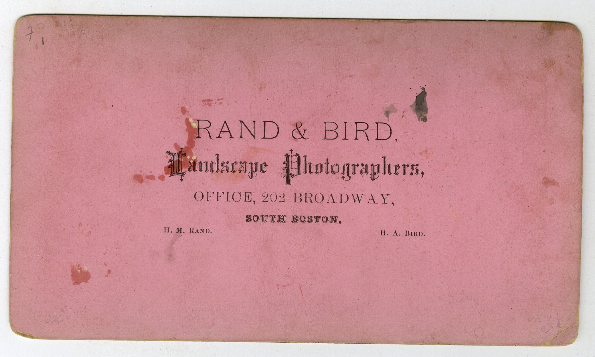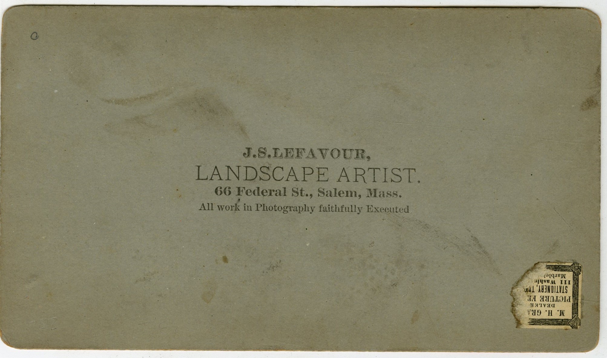 Mass351. Hurd & Smith’s Excelsior Gallery, North Adams, Mass. 220. End End-near view. G. $20