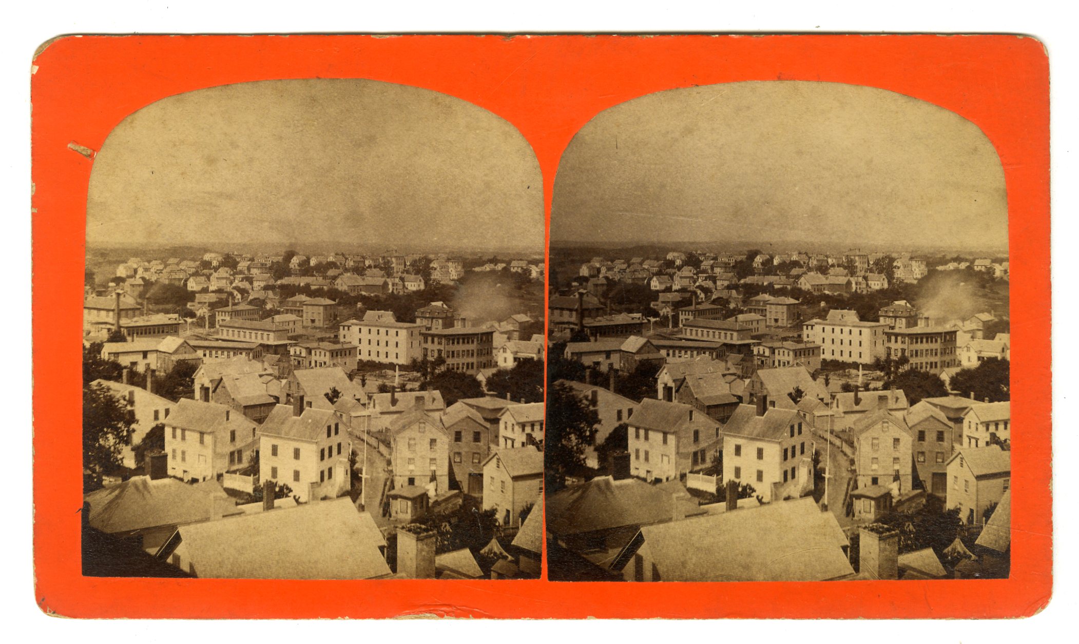 MASS53. Stamp of B.F. Stevens, Peabody, Jeweler & Stationer, on verso. Peabody Square, Allens Block. Few spots on left image o/w VG. $75