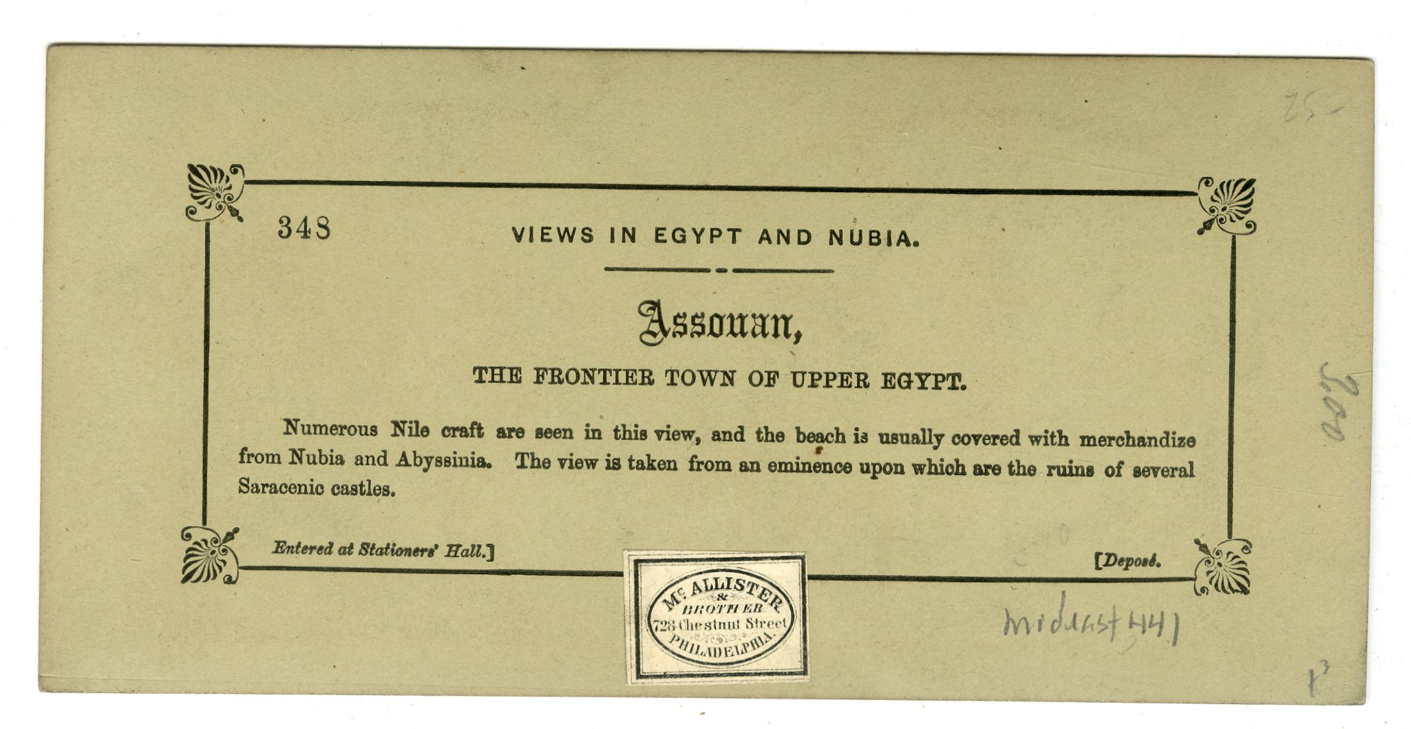 Mideast441. Francis Frith. Views in Egypt and Nubia. 348. Assouan, The Frontier Town of Upper Egypt. G+. $25
