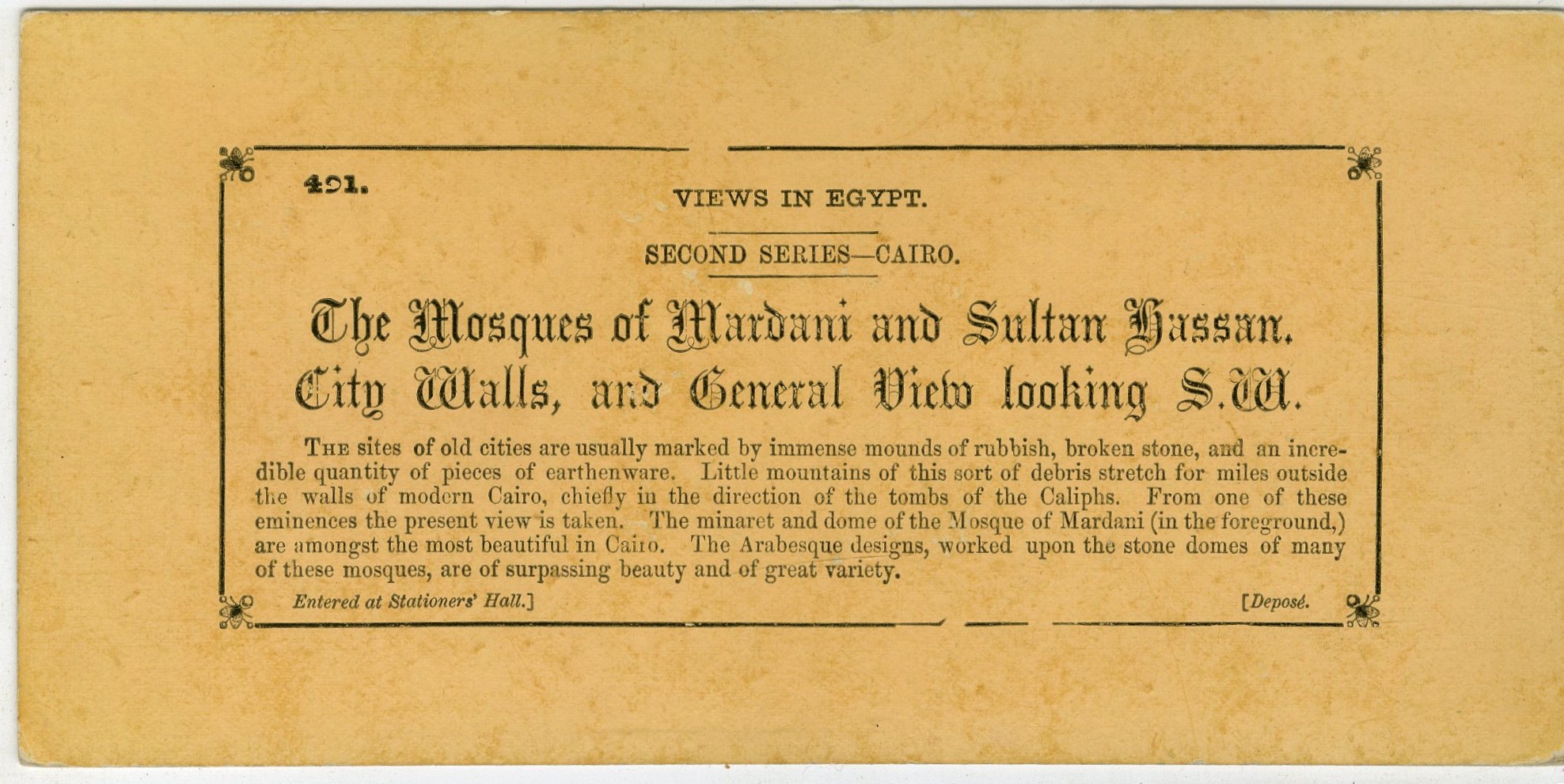 Mideast462. Francis Frith. 491. Views in Egypt. Second Series-Cairo. The Mosques of Mardani and Sultan Hassan. City Walls, and General View looking SW. Tinted. VG. $40
